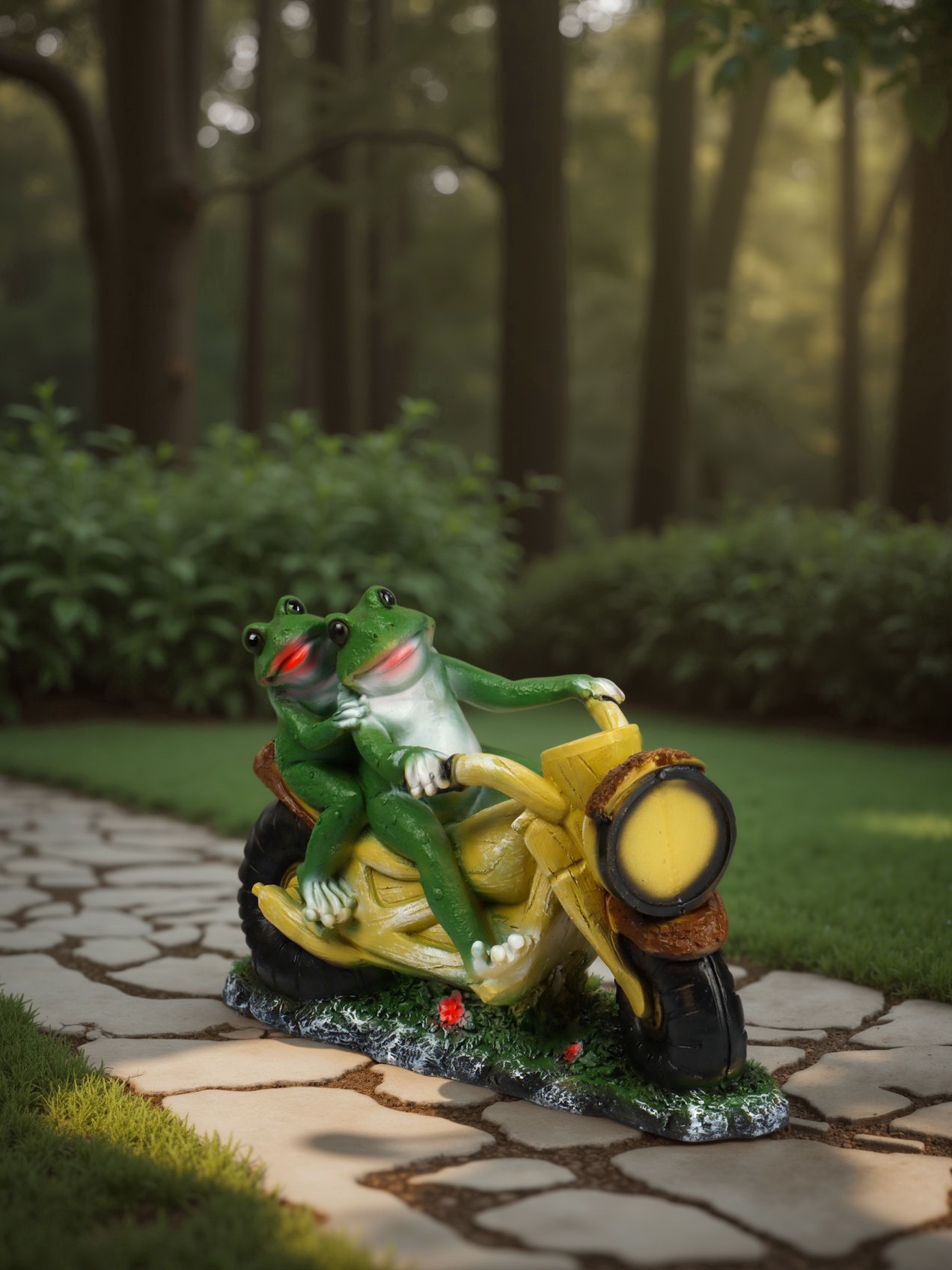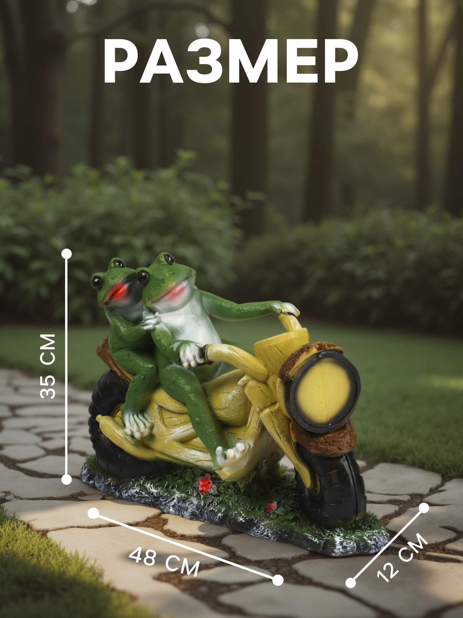 Садовая фигура из полистоуна "Лягушки на мотоцикле", 35x48x12 см, 38x12x35 см., Хорошие сувениры, Россия