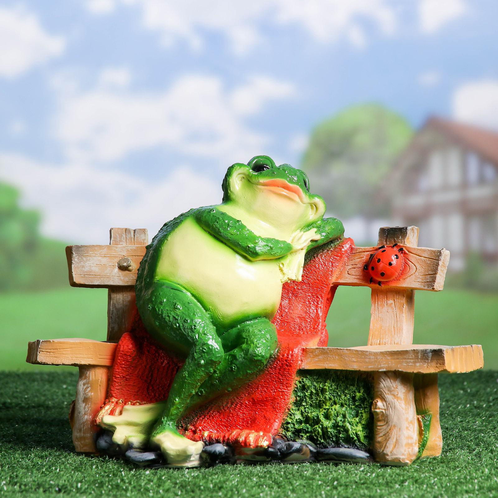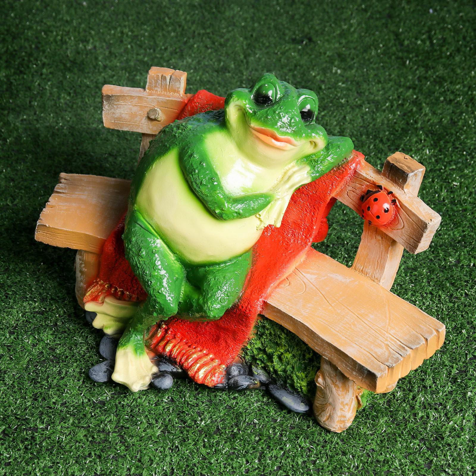 Садовая фигура из полистоуна "Лягушка сидит на лавочке", 27x38 см, 38x23x27 см., Хорошие сувениры, Россия