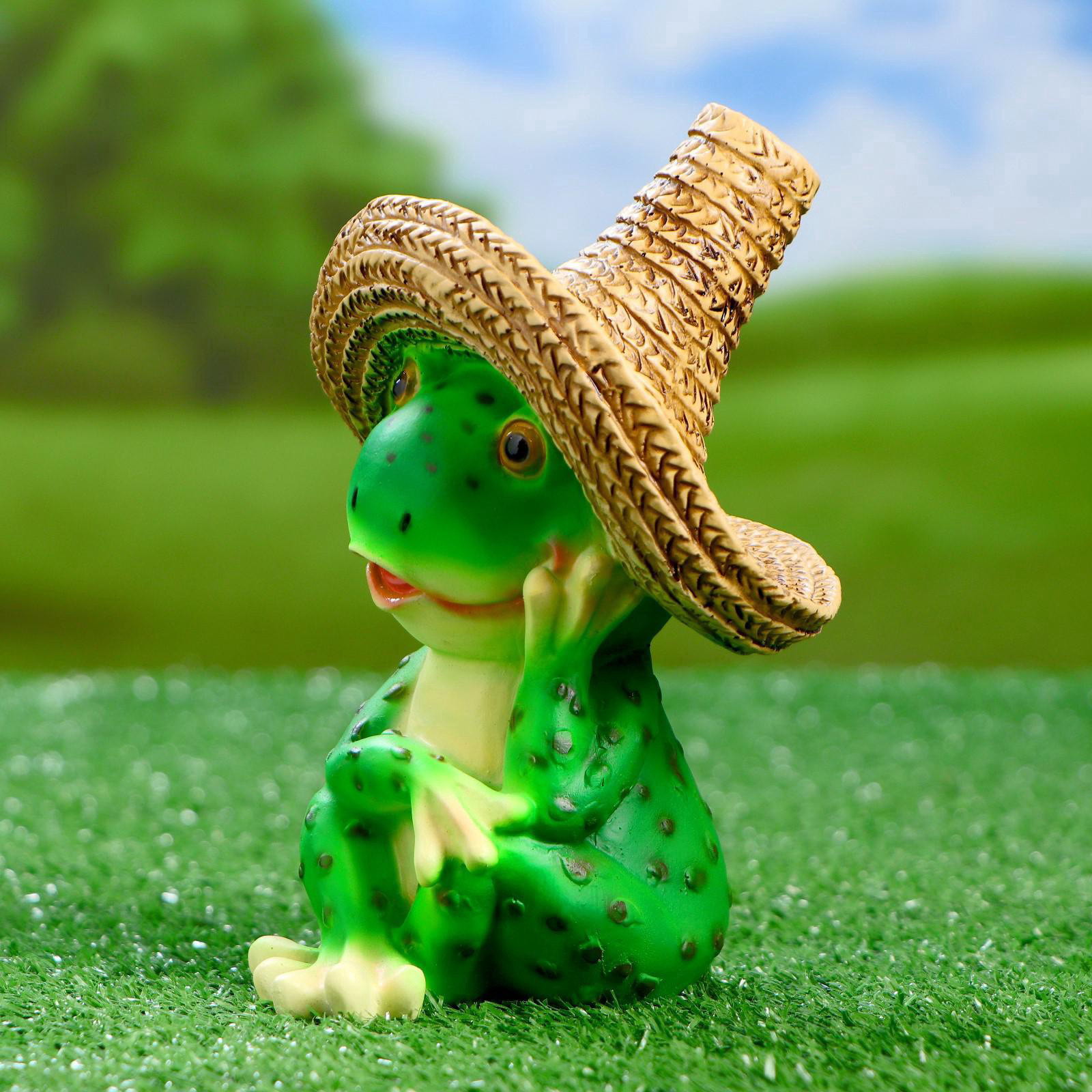 Садовая фигура из полистоуна "Лягушка в соломенной шляпе", 16.5x11x12 см, Хорошие сувениры, Россия