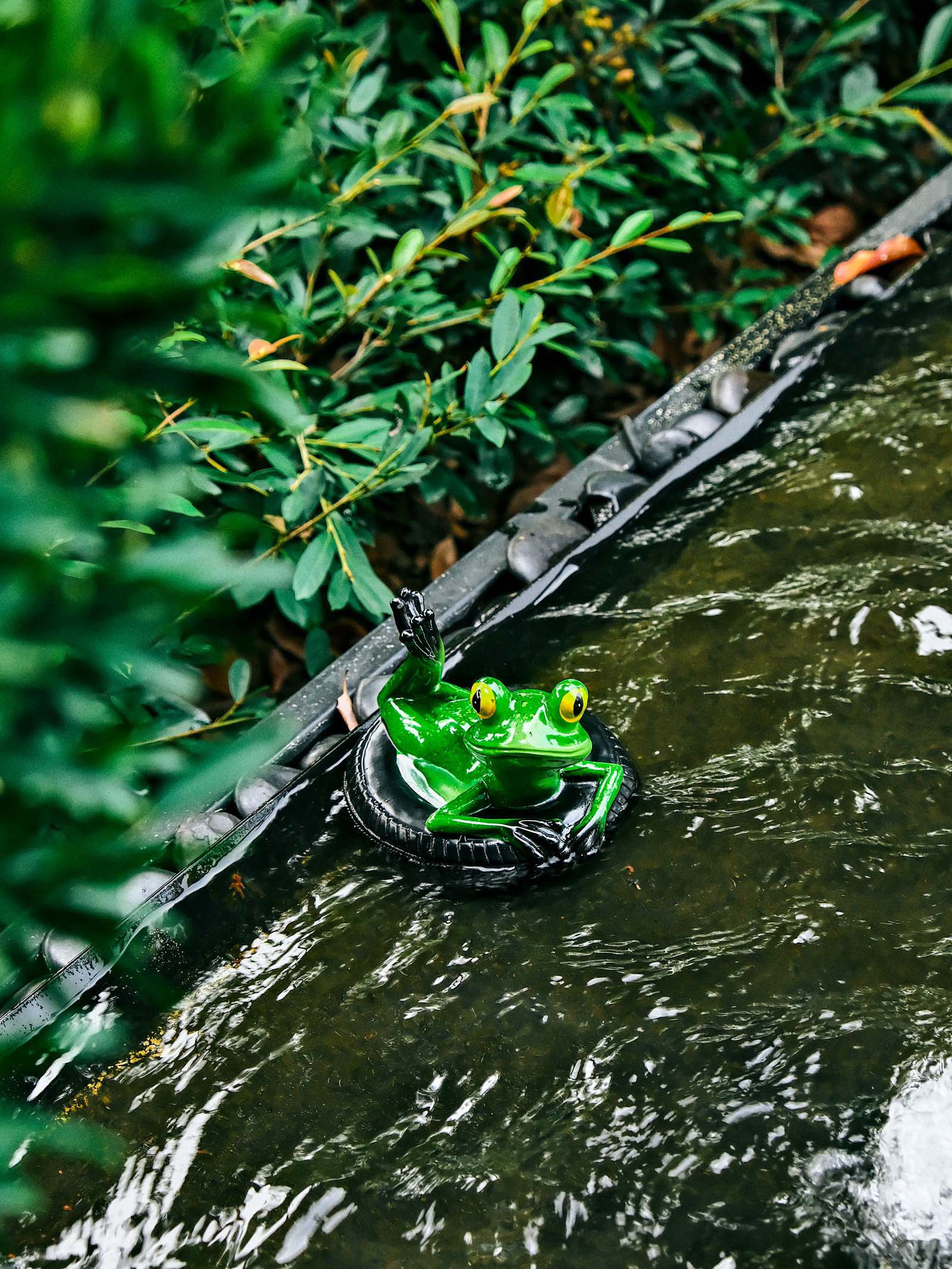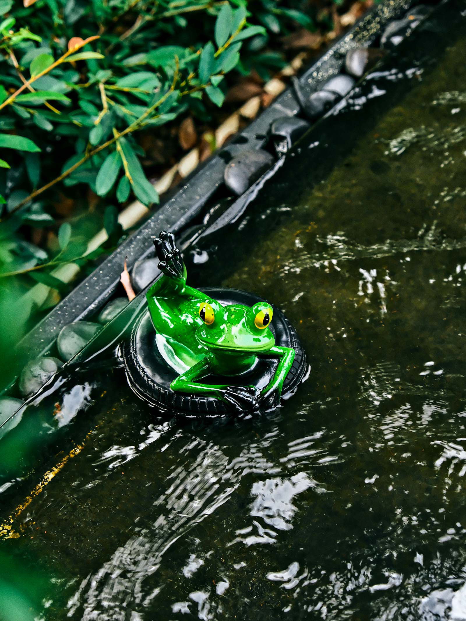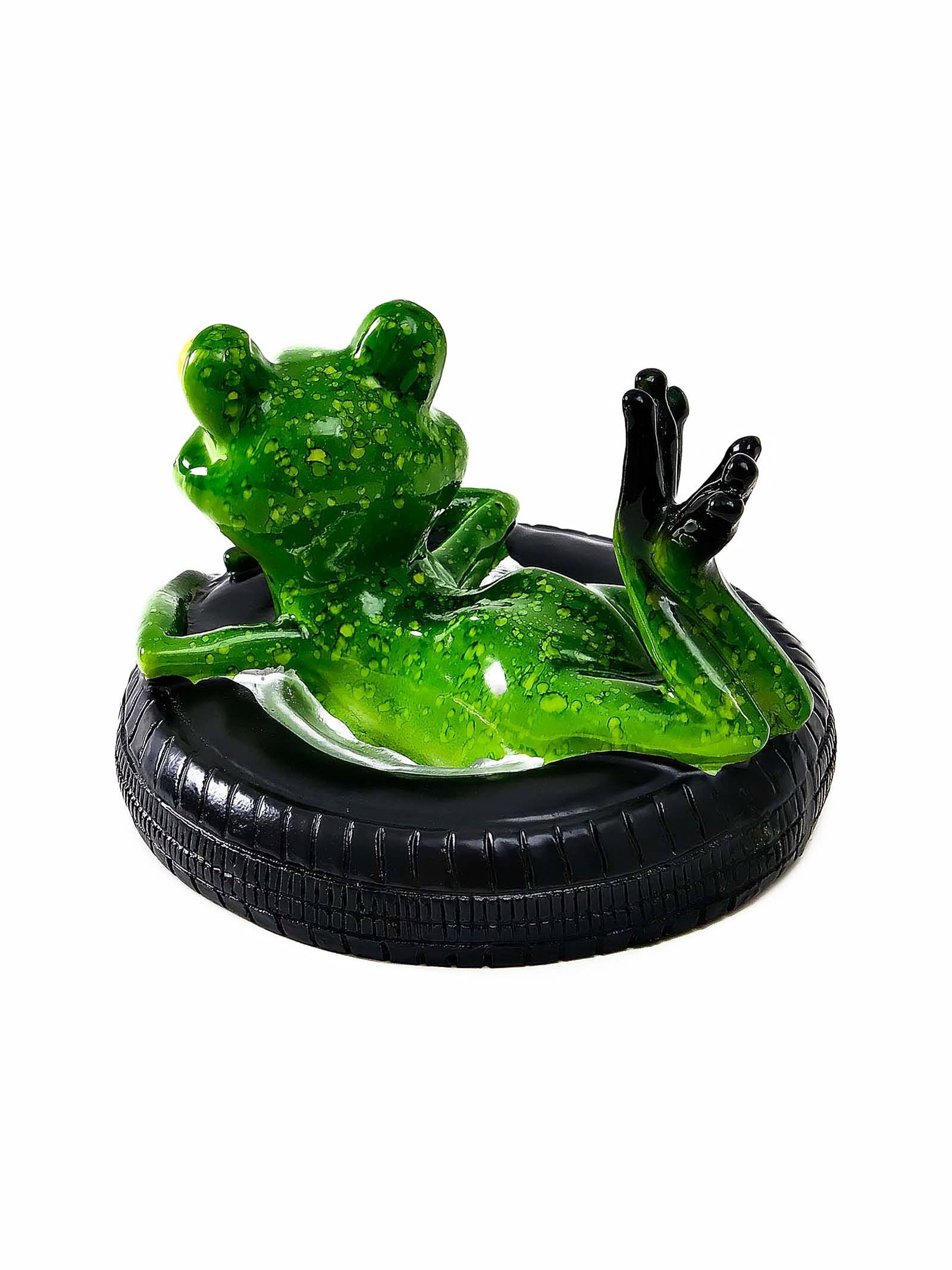 Садовая фигура из полистоуна "Лягушка на шине", 14x13x9.5 см, водоплавающая, 15.5x13x8.5 см., Китай