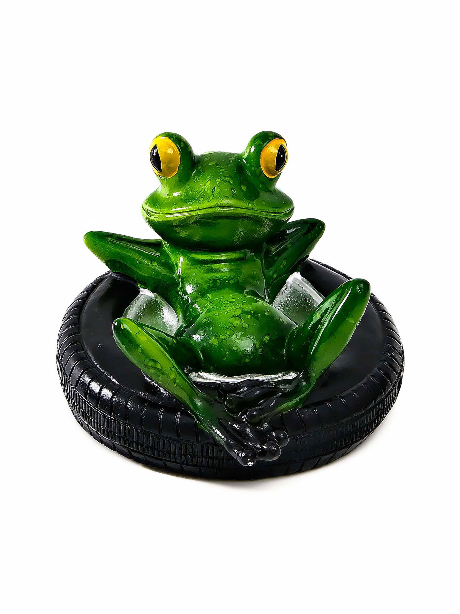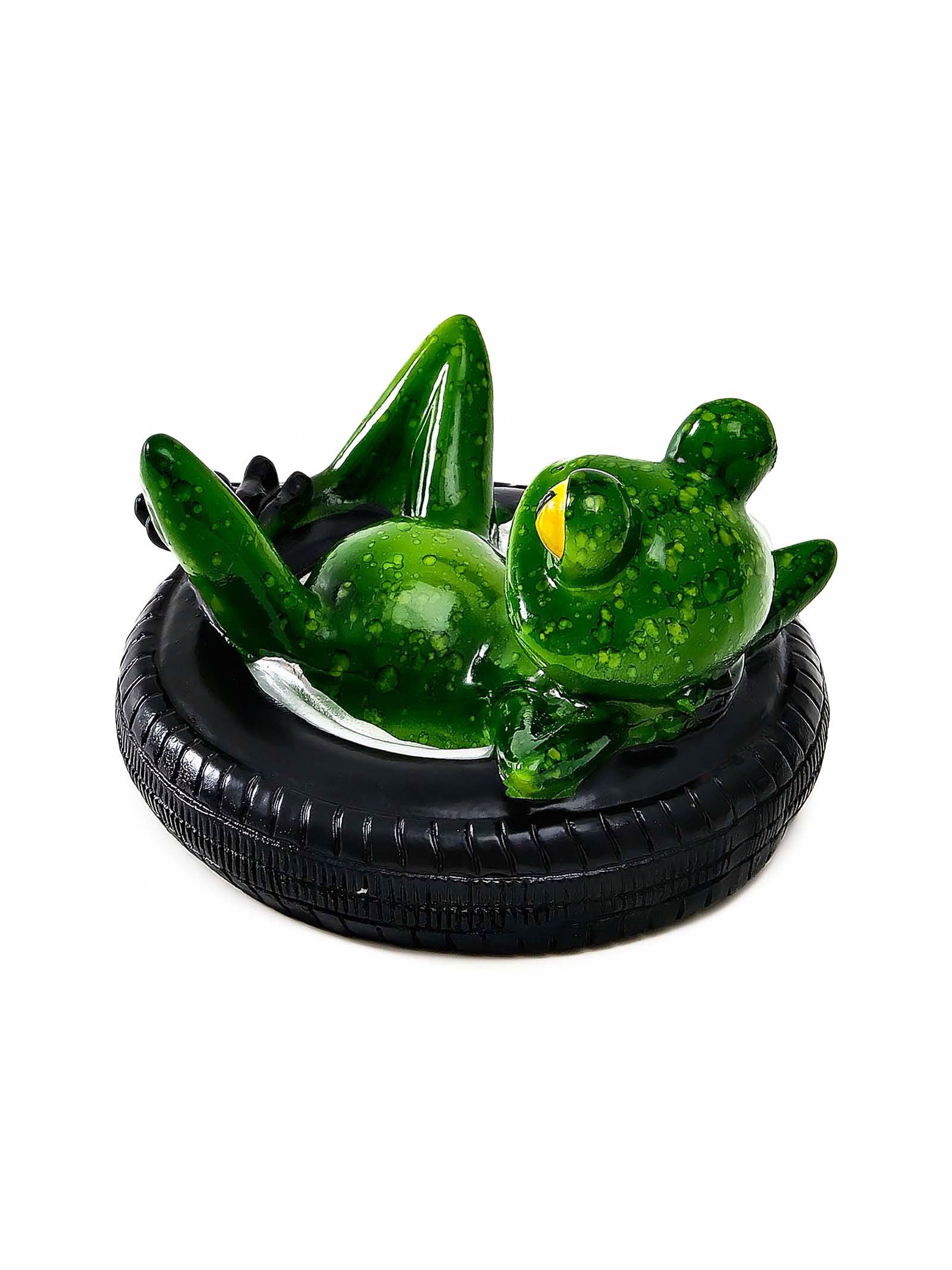 Садовая фигура из полистоуна "Лягушка лежит на шине", 14x13x9.5 см, водоплавающая, 17x18x8.5 см., Китай