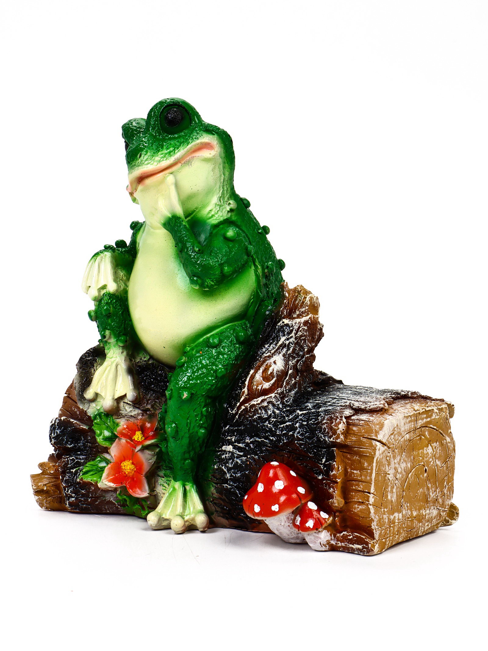 Садовая фигура из полистоуна "Лягушка на бревне", 28x26x11 см, Хорошие сувениры, Россия