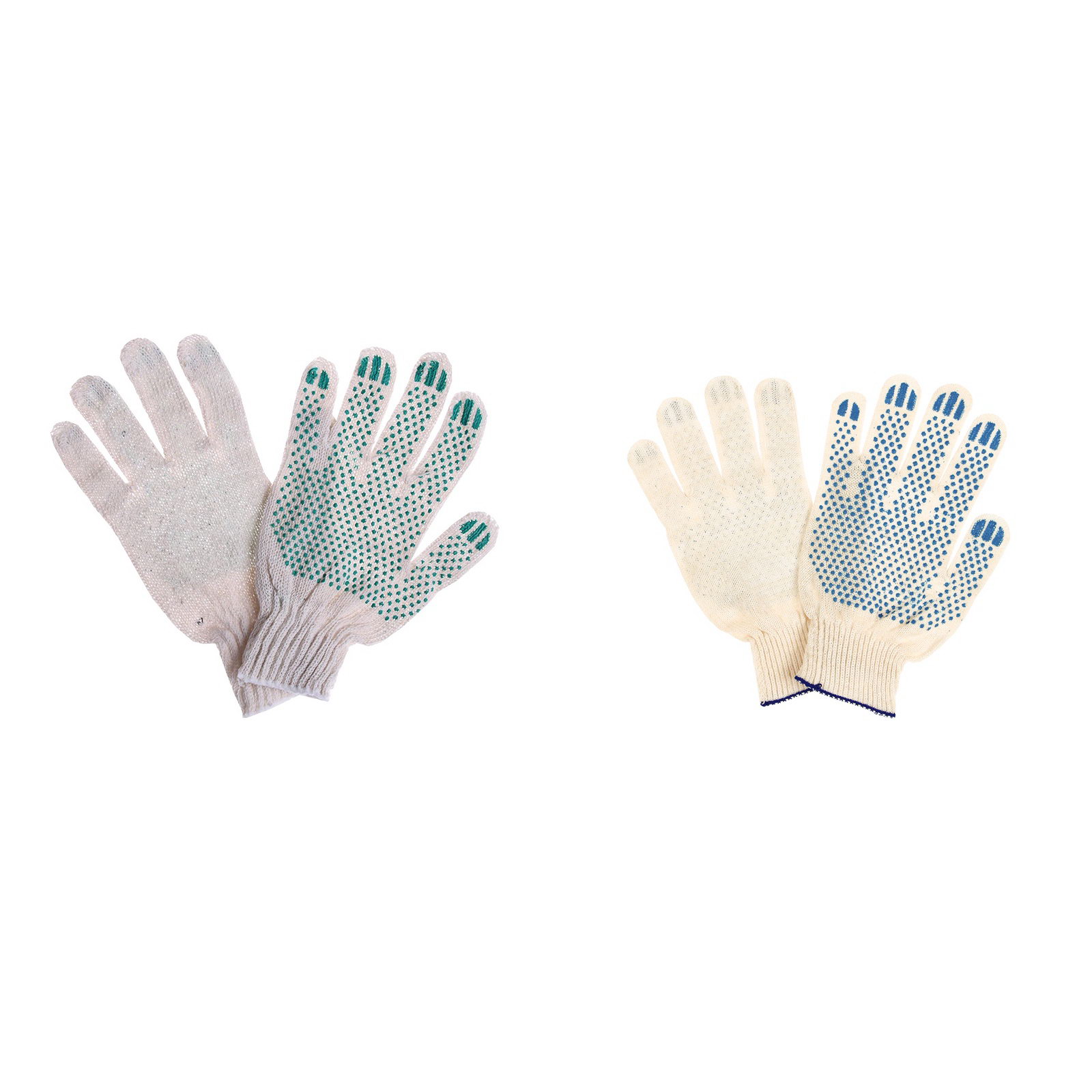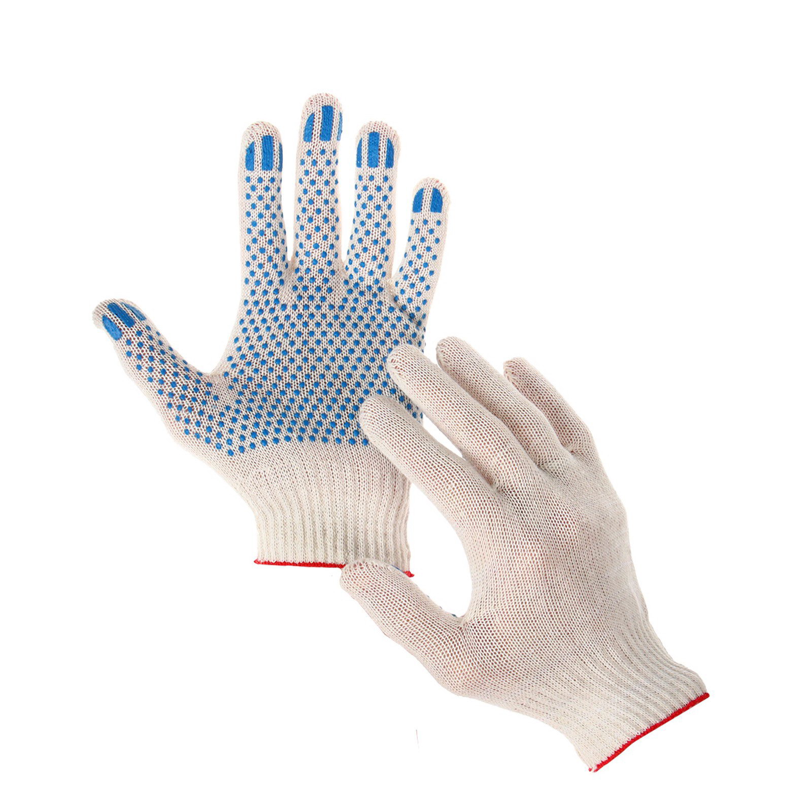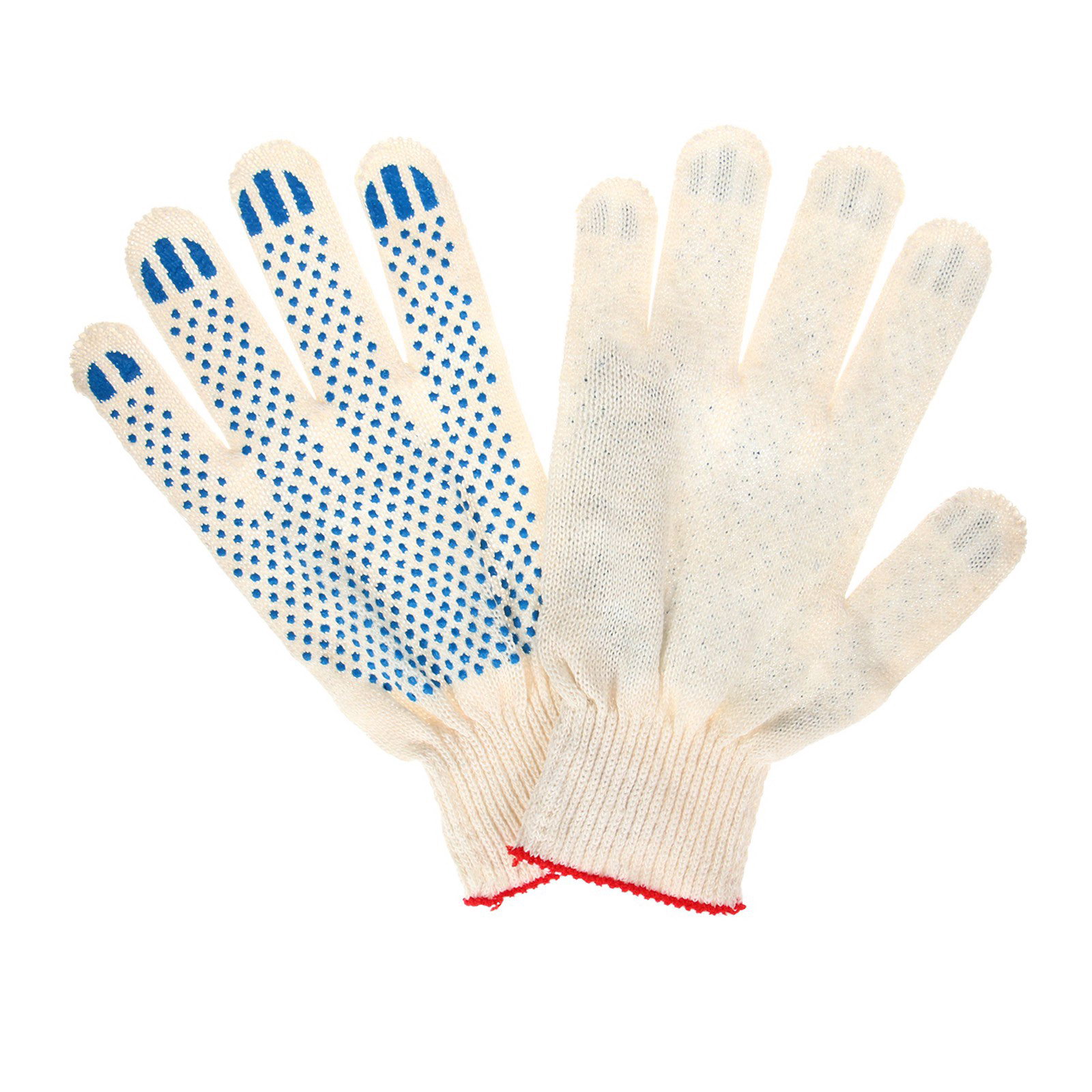 Перчатки садовые, хб, вязка 10 класс, 3 нити, размер 9, с ПВХ точками, белые, Greengo, Россия