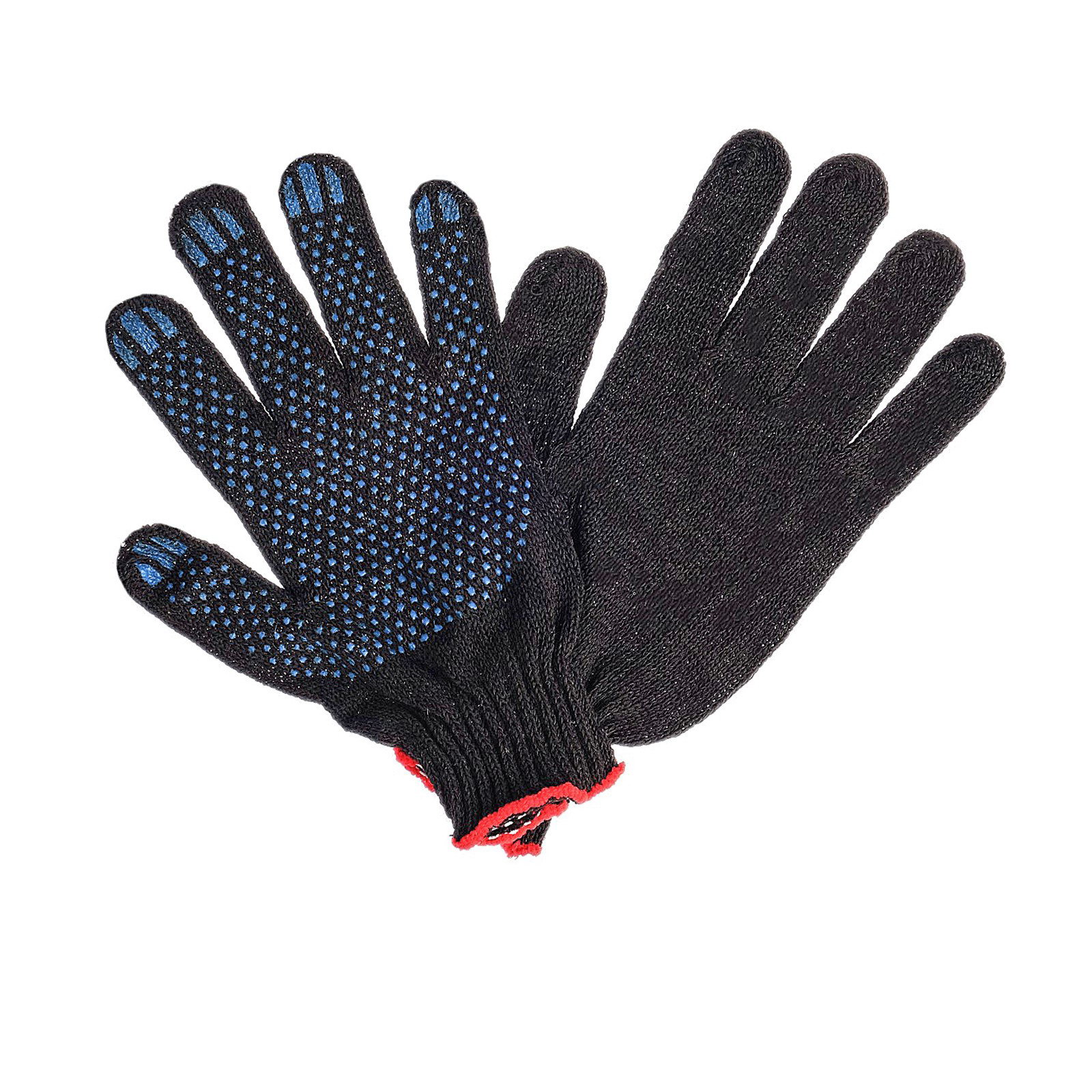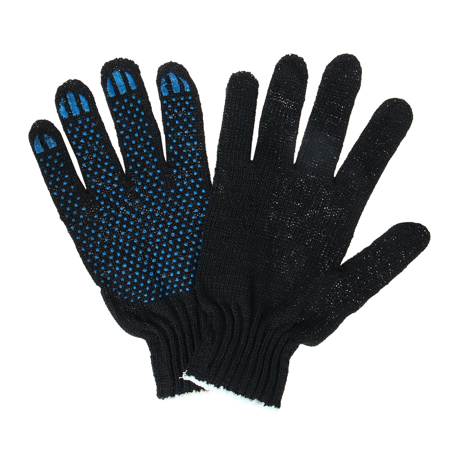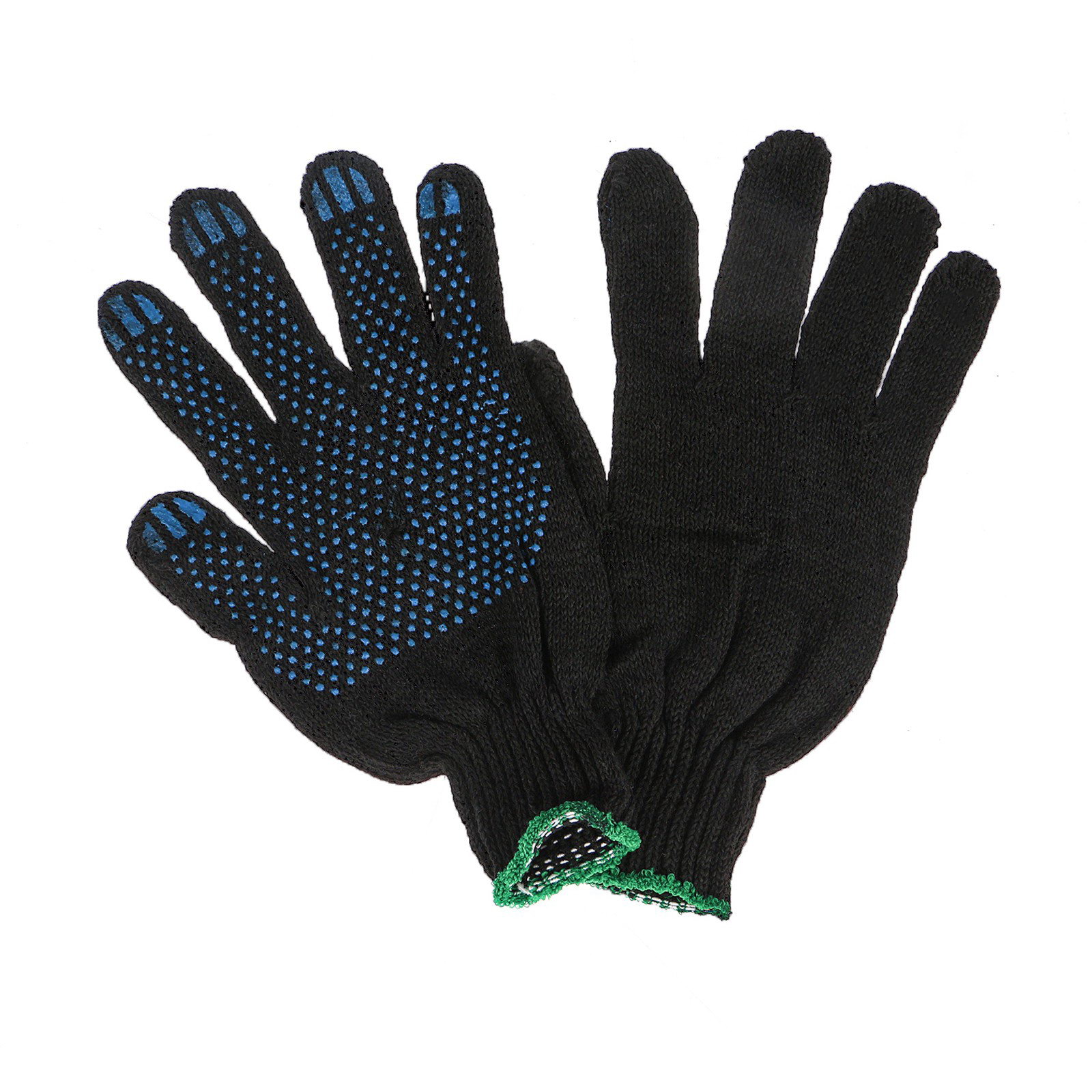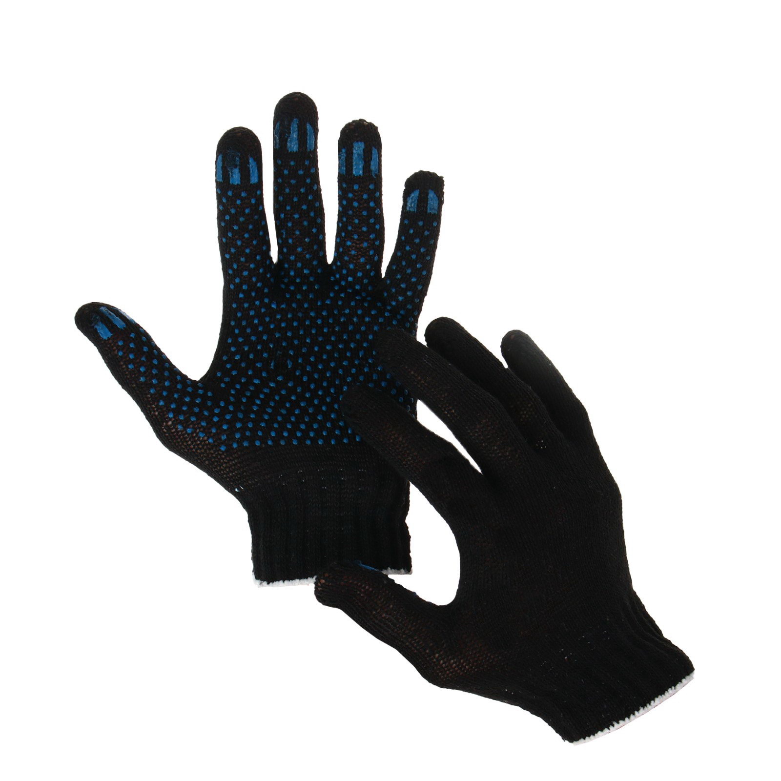 Перчатки садовые, хб, вязка 7 класс, 3 нити, размер 9, с ПВХ точками, чёрные, Россия