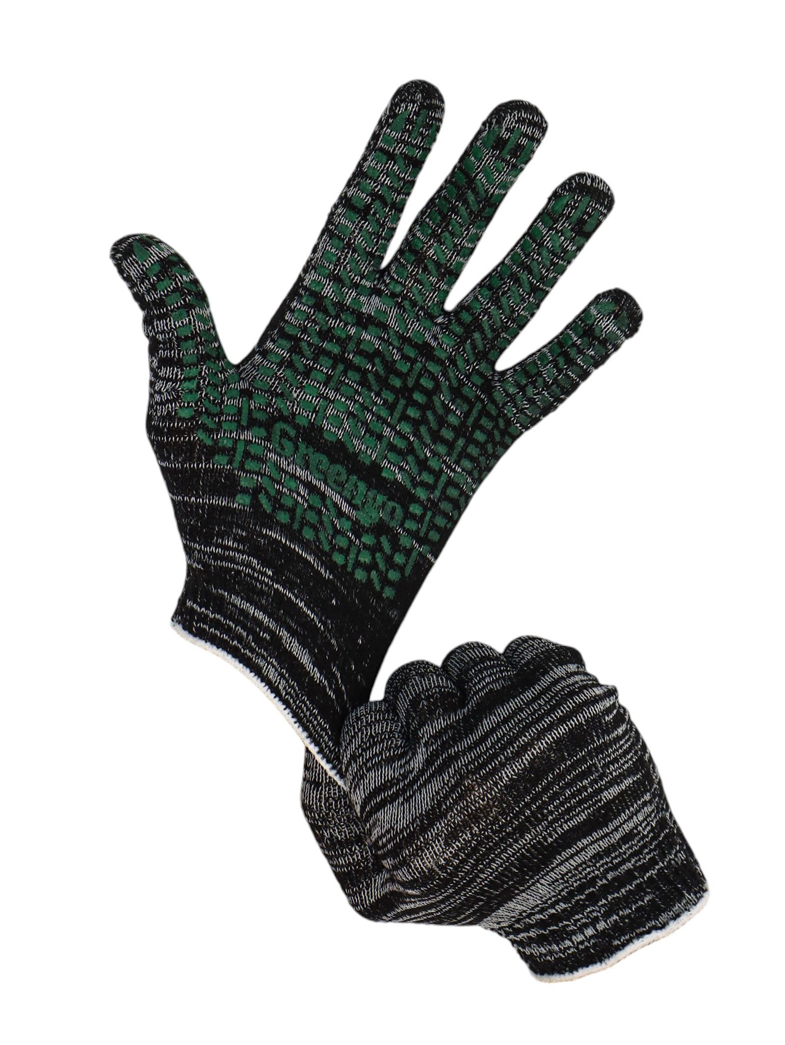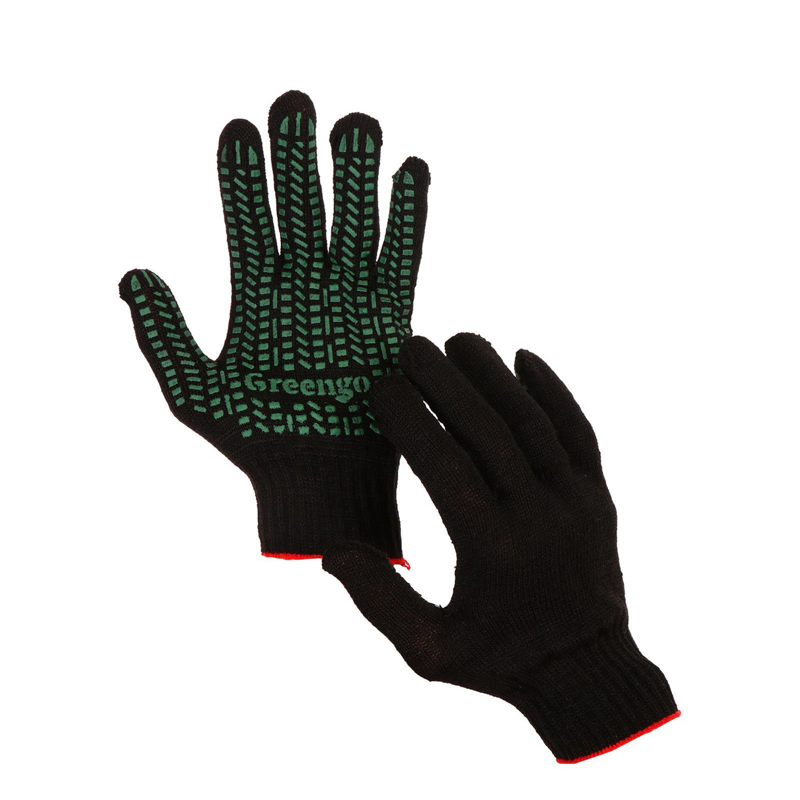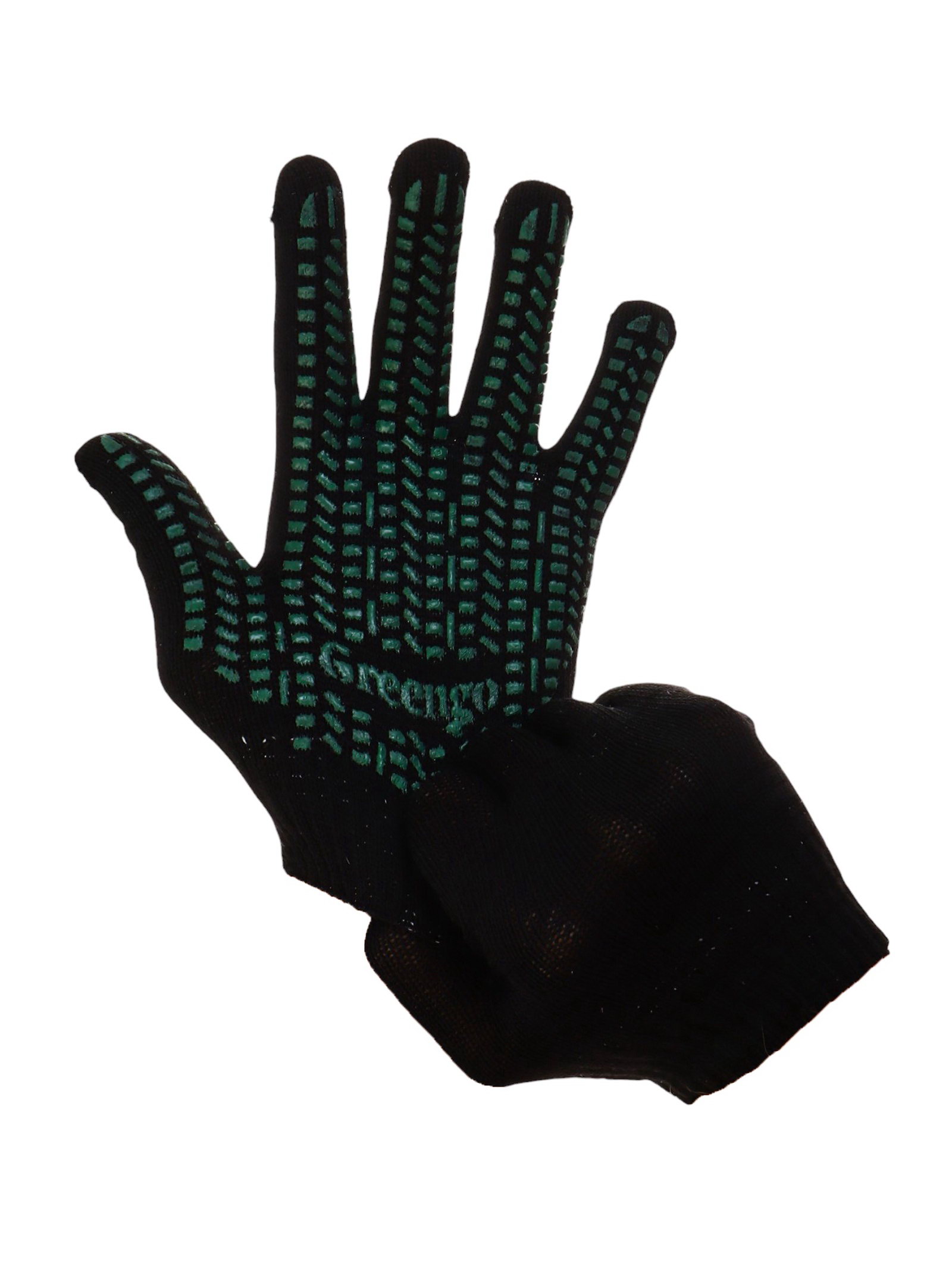 Перчатки садовые, хб, вязка 10 класс, 4 нити, размер 9, с ПВХ точками, чёрные, Greengo, Россия