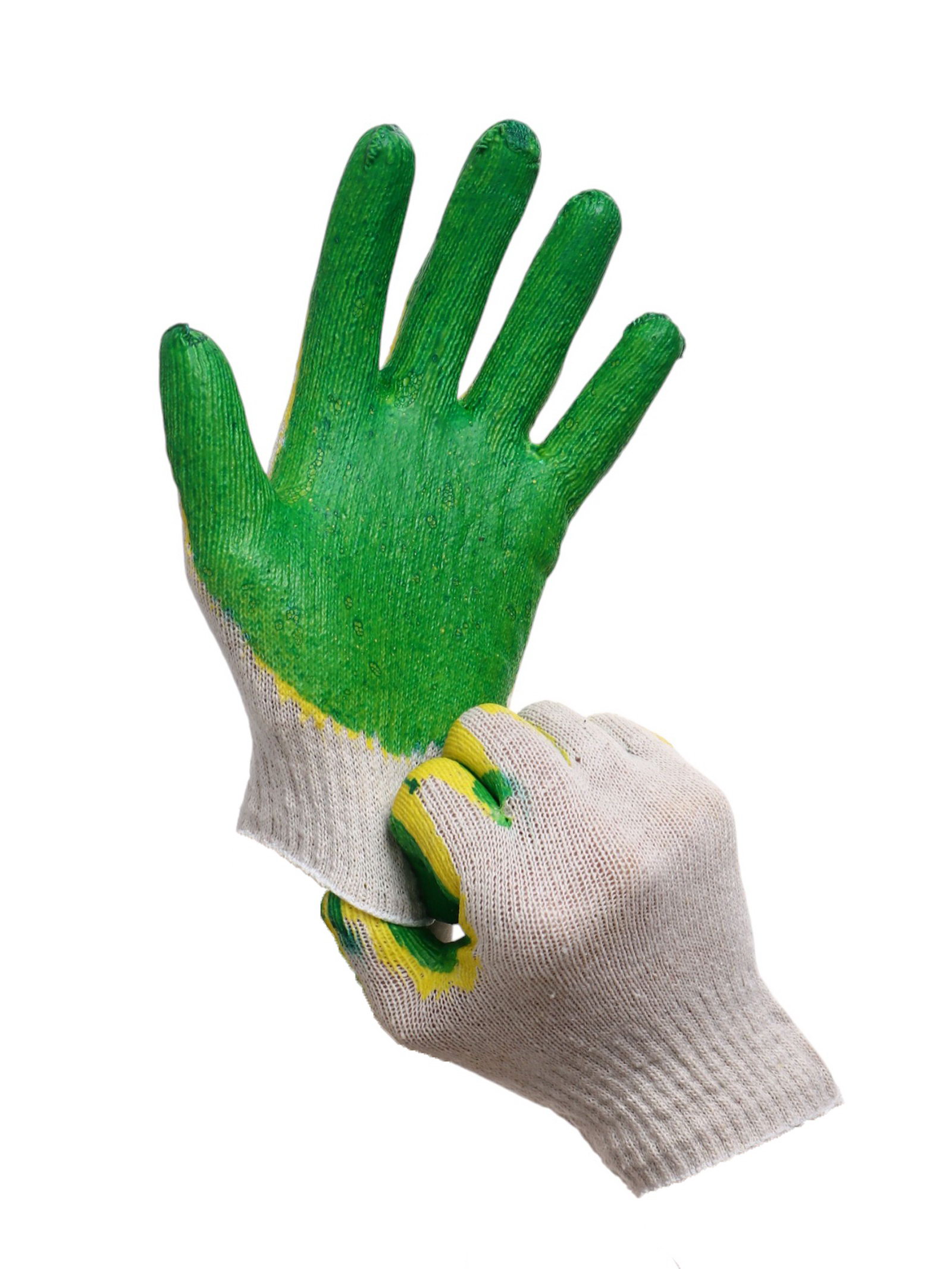 Перчатки садовые, хб, вязка 13 класс, размер 9, двойной латексный облив, зелёные, Россия