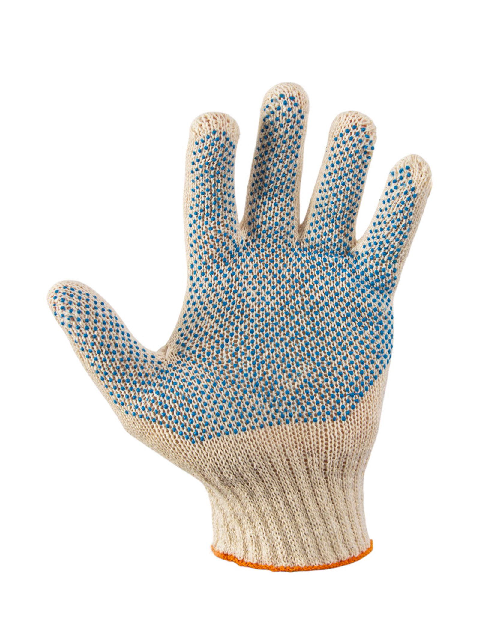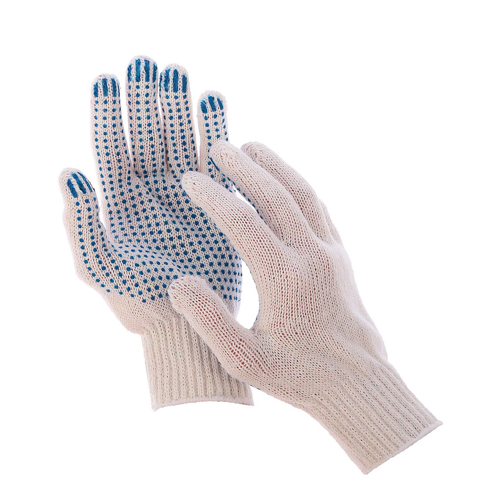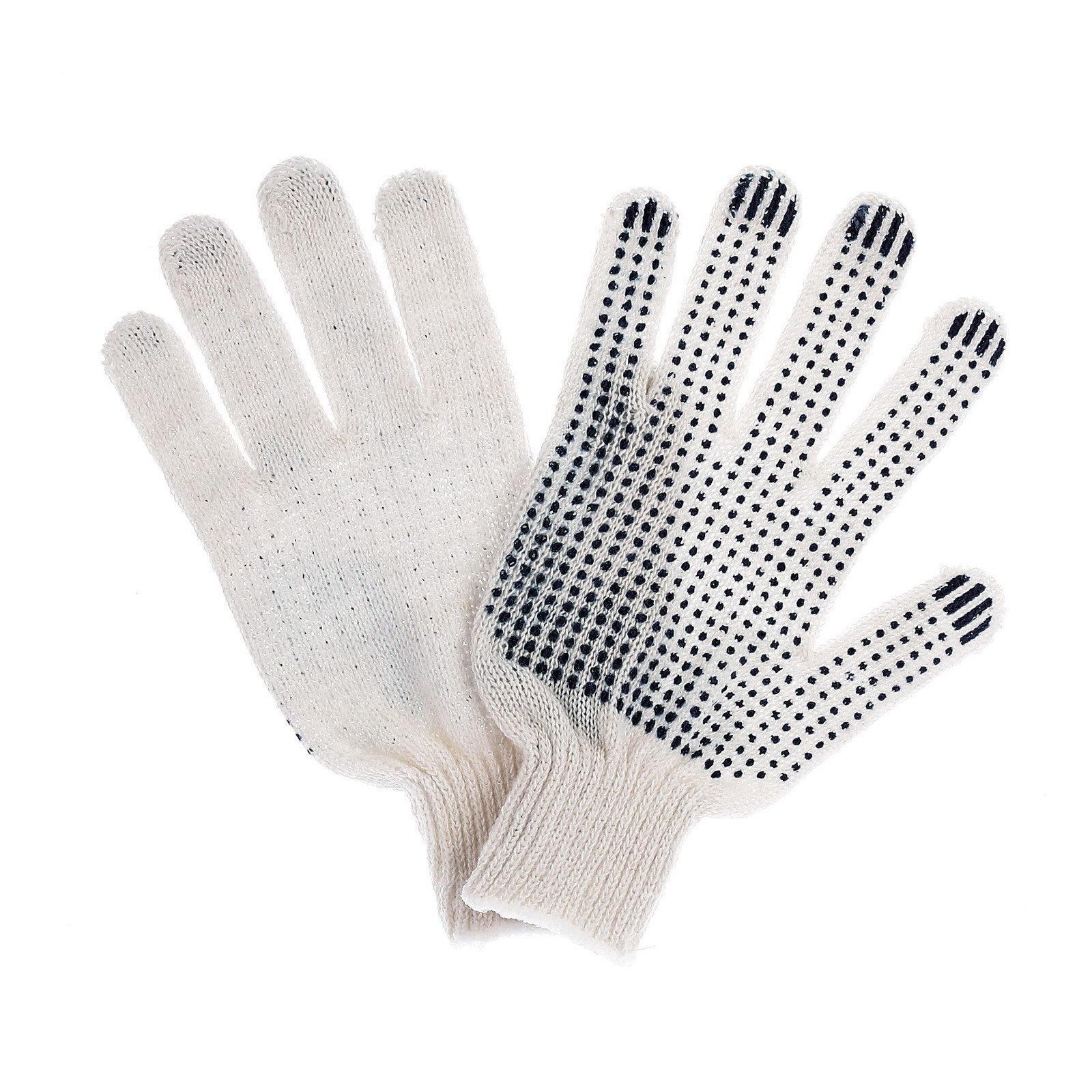 Перчатки рабочие, хб, вязка 7 класс, 3 нити, размер 9, с ПВХ точками, белые, Россия