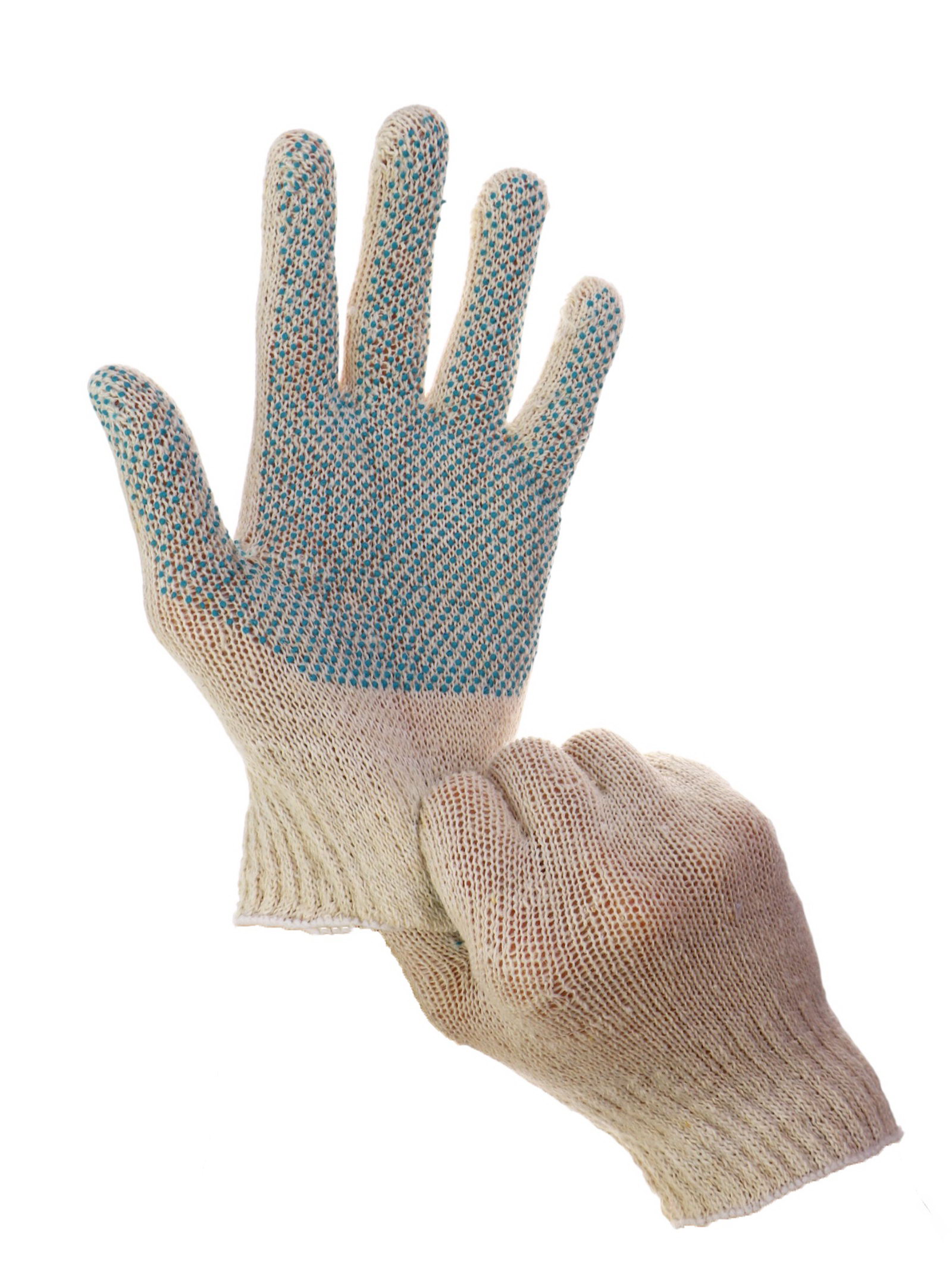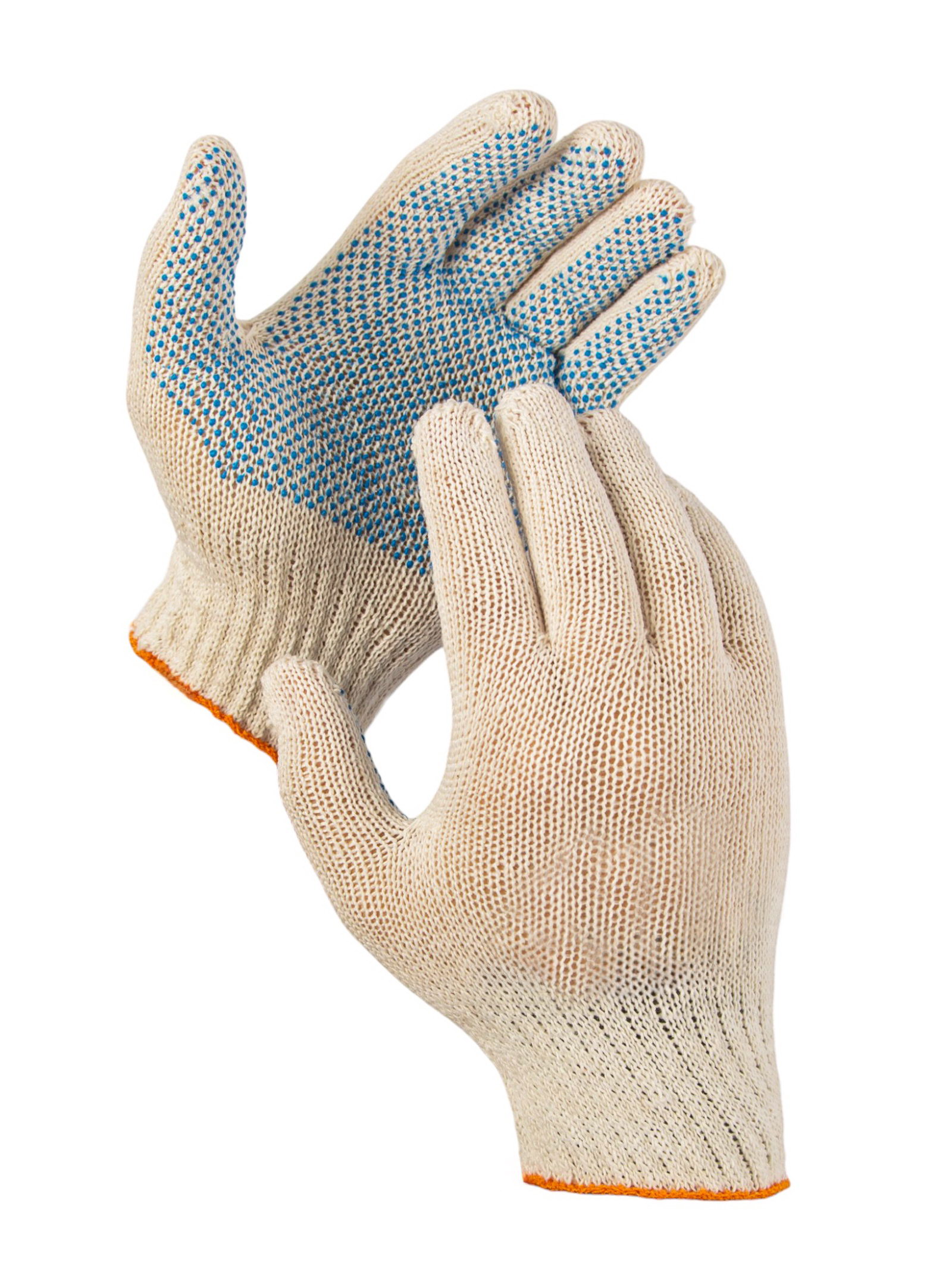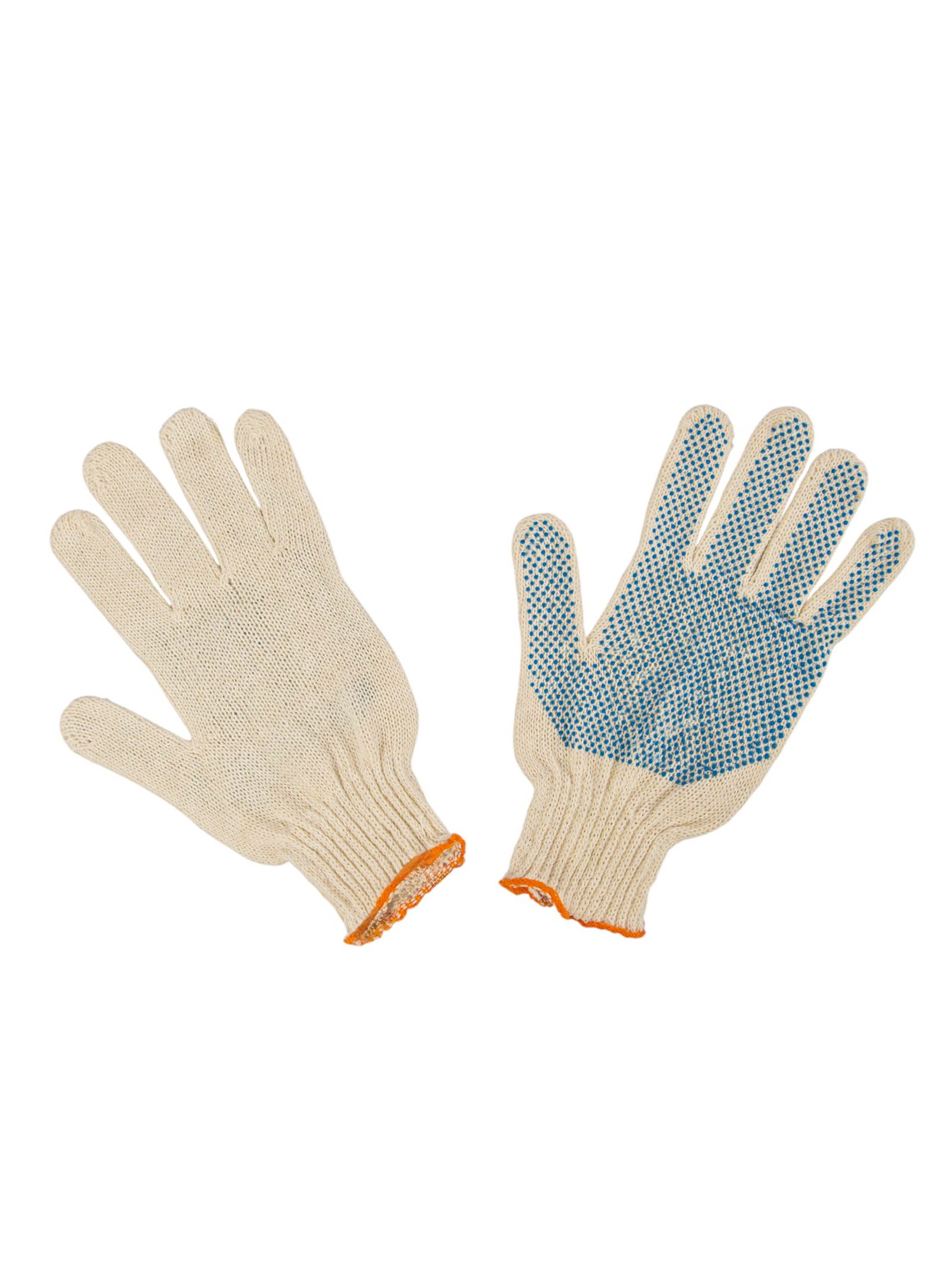 Перчатки рабочие, хб, вязка 7 класс, 3 нити, размер 9, с ПВХ точками, белые, Россия