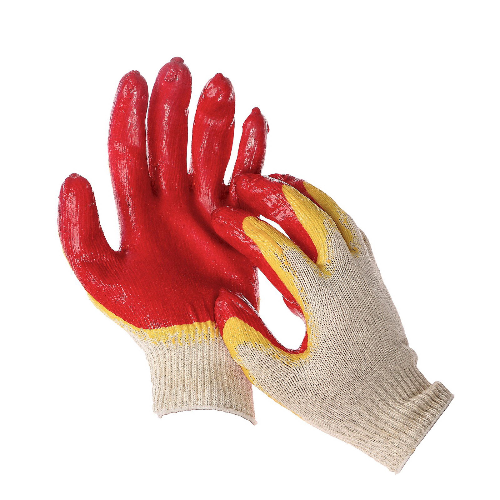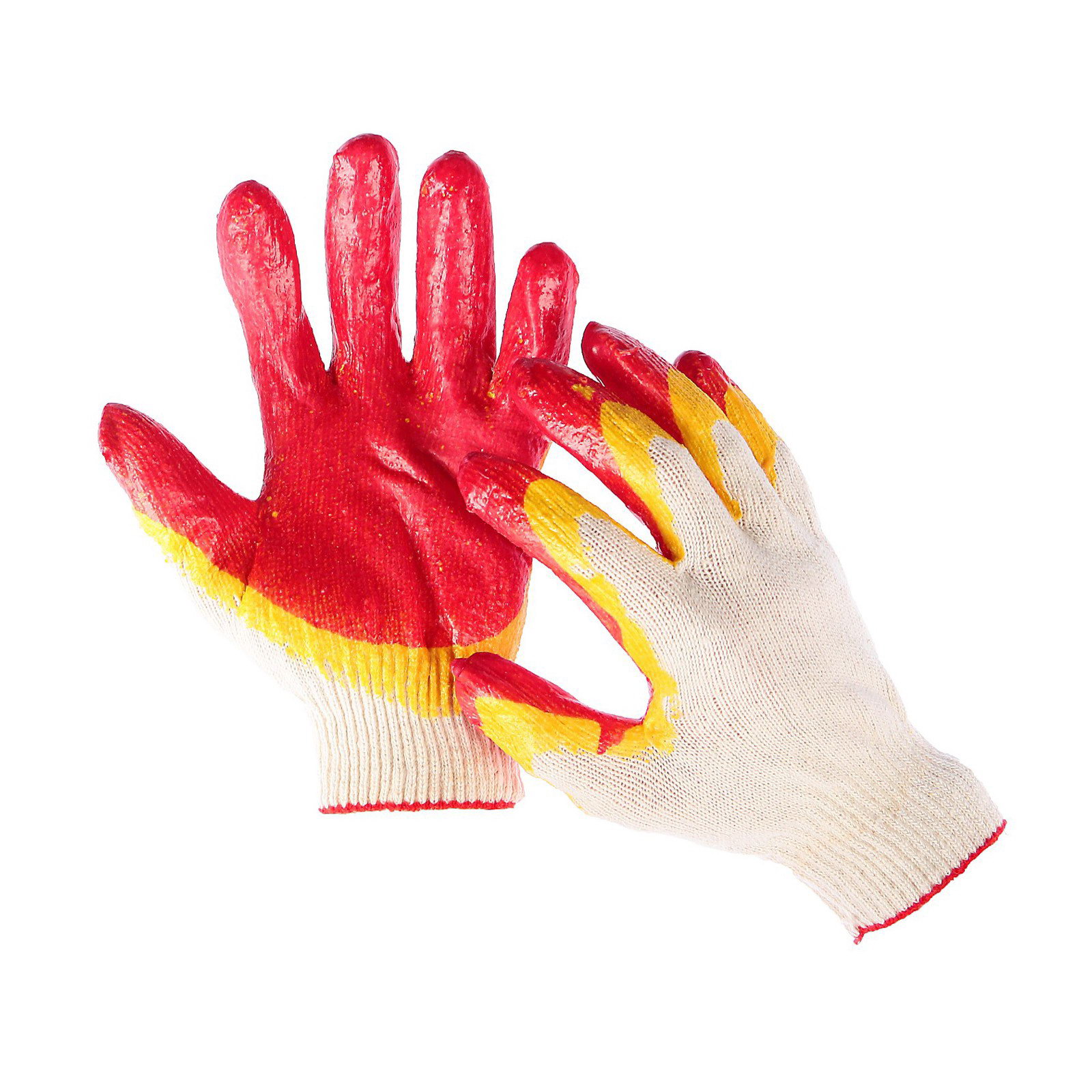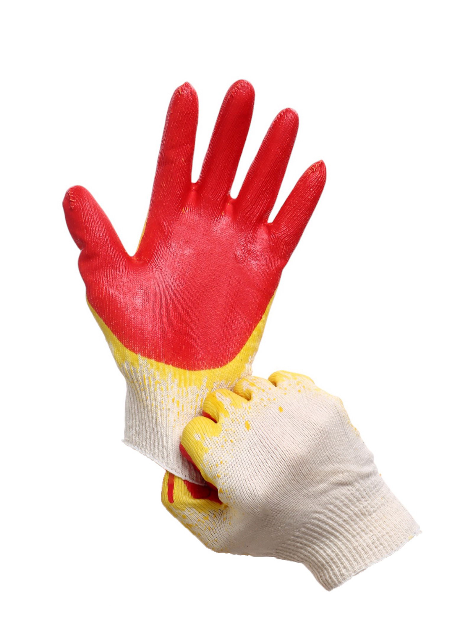 Перчатки садовые, хб, вязка 13 класс, размер 9, латексный облив, красные, Россия