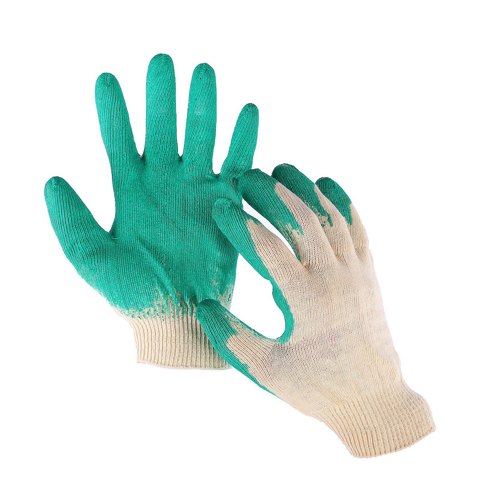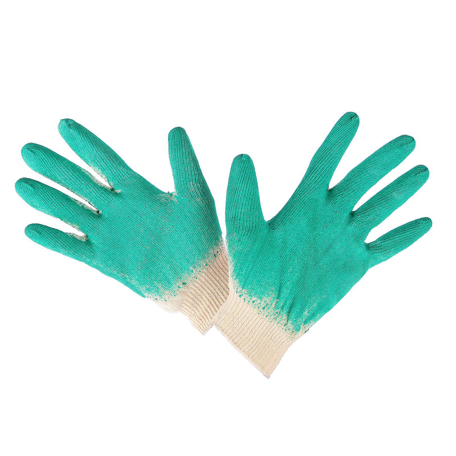 Перчатки садовые, хб, вязка 13 класс, размер 9, латексный облив, зелёные, Россия