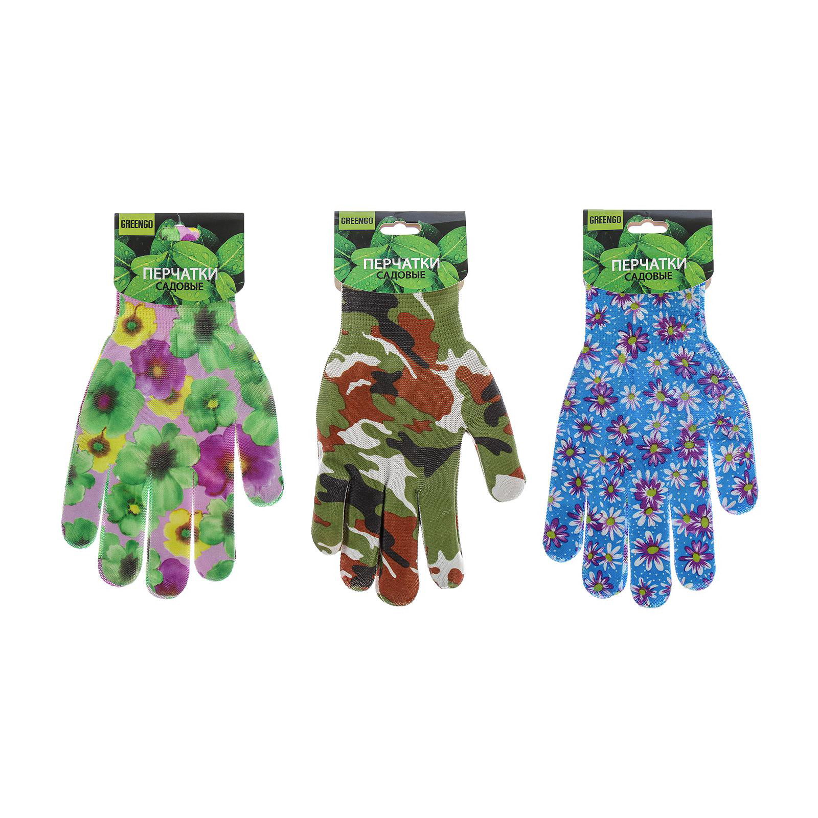Перчатки садовые, нейлоновые, без покрытия, размер 9, цвет МИКС, Greengo, Китай