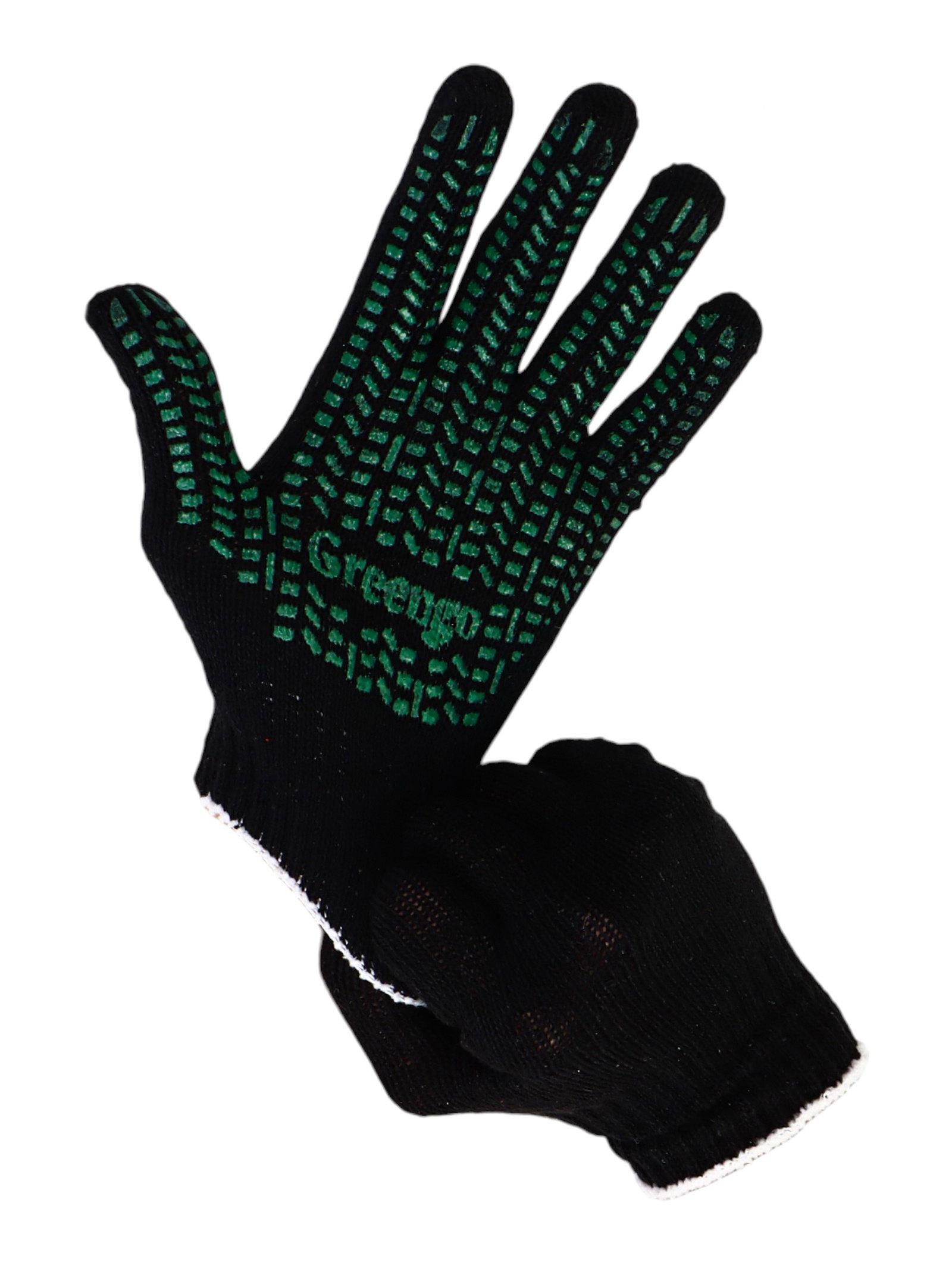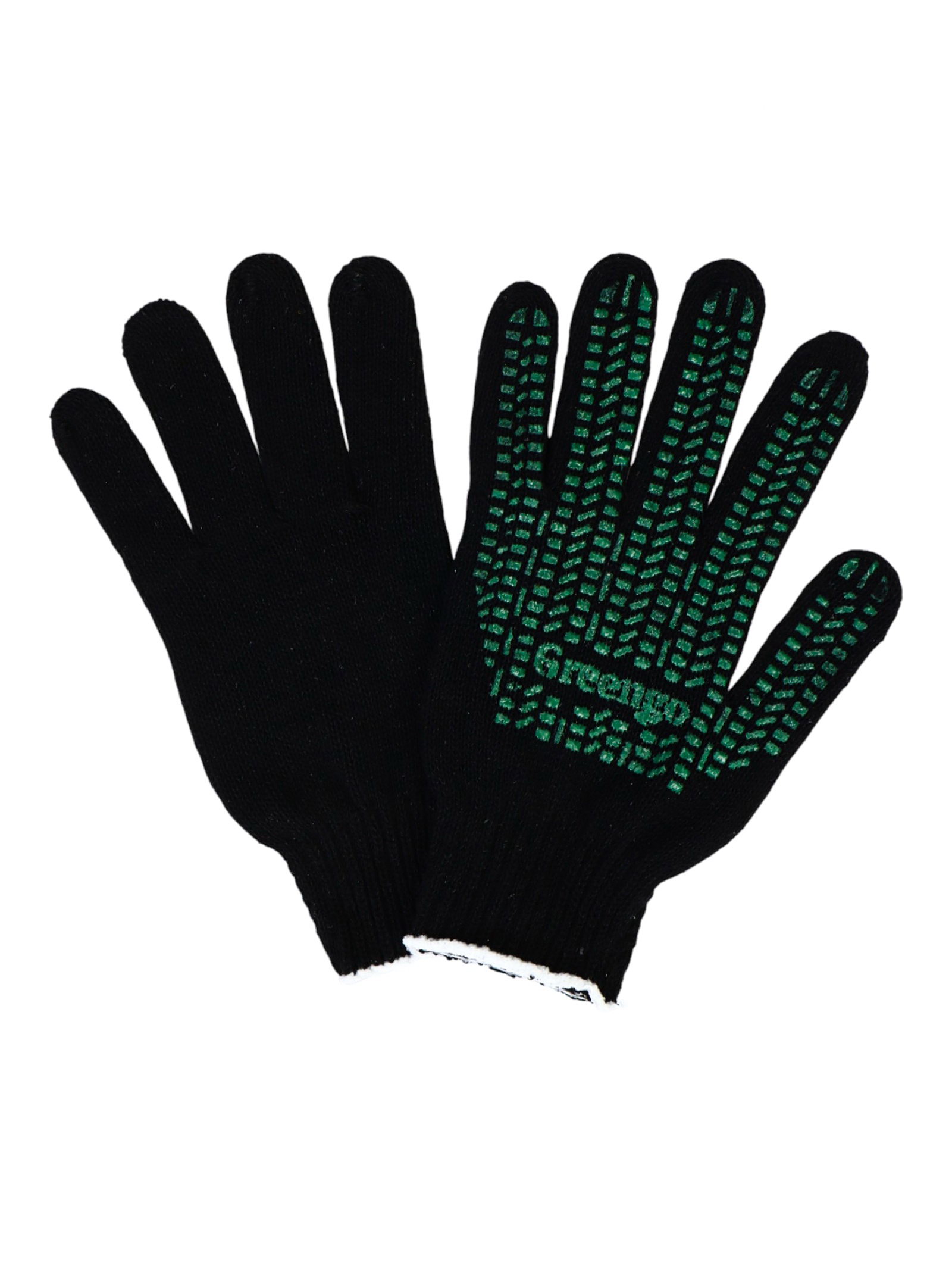 Перчатки садовые, хб, вязка 7 класс, 6 нитей, размер 10, с ПВХ точками, чёрные, Greengo, Россия