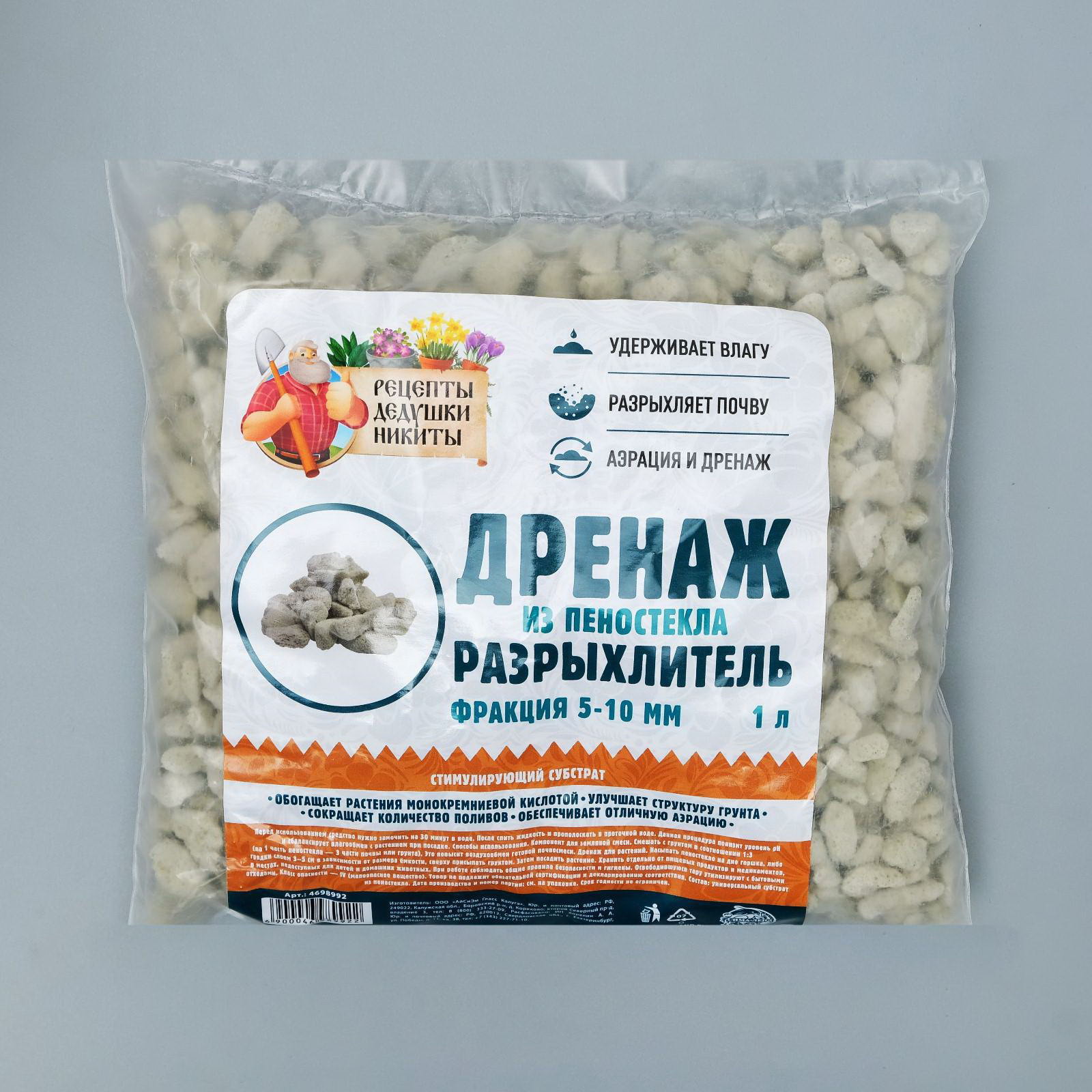 Дренаж и разрыхлитель из пеностекла "Рецепты Дедушки Никиты" фр 5-10 мм, 1 л, Рецепты дедушки Никиты, Россия