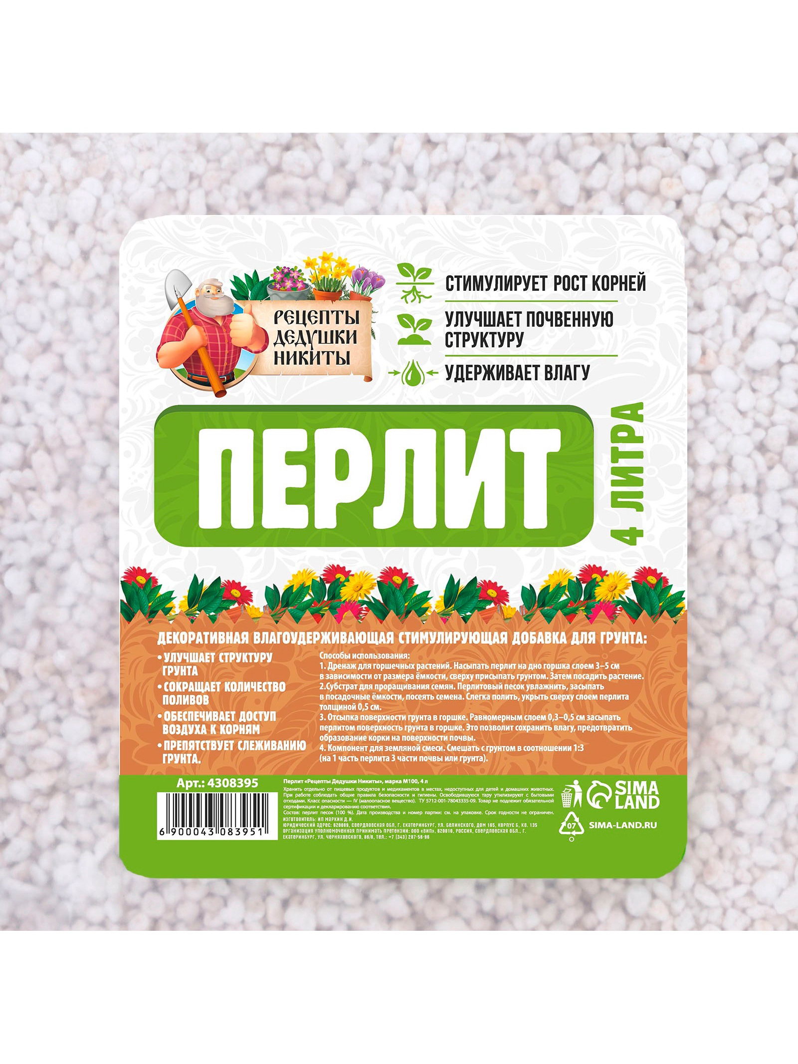 Перлит "Рецепты Дедушки Никиты" марка М100 4 л, Рецепты дедушки Никиты, Россия
