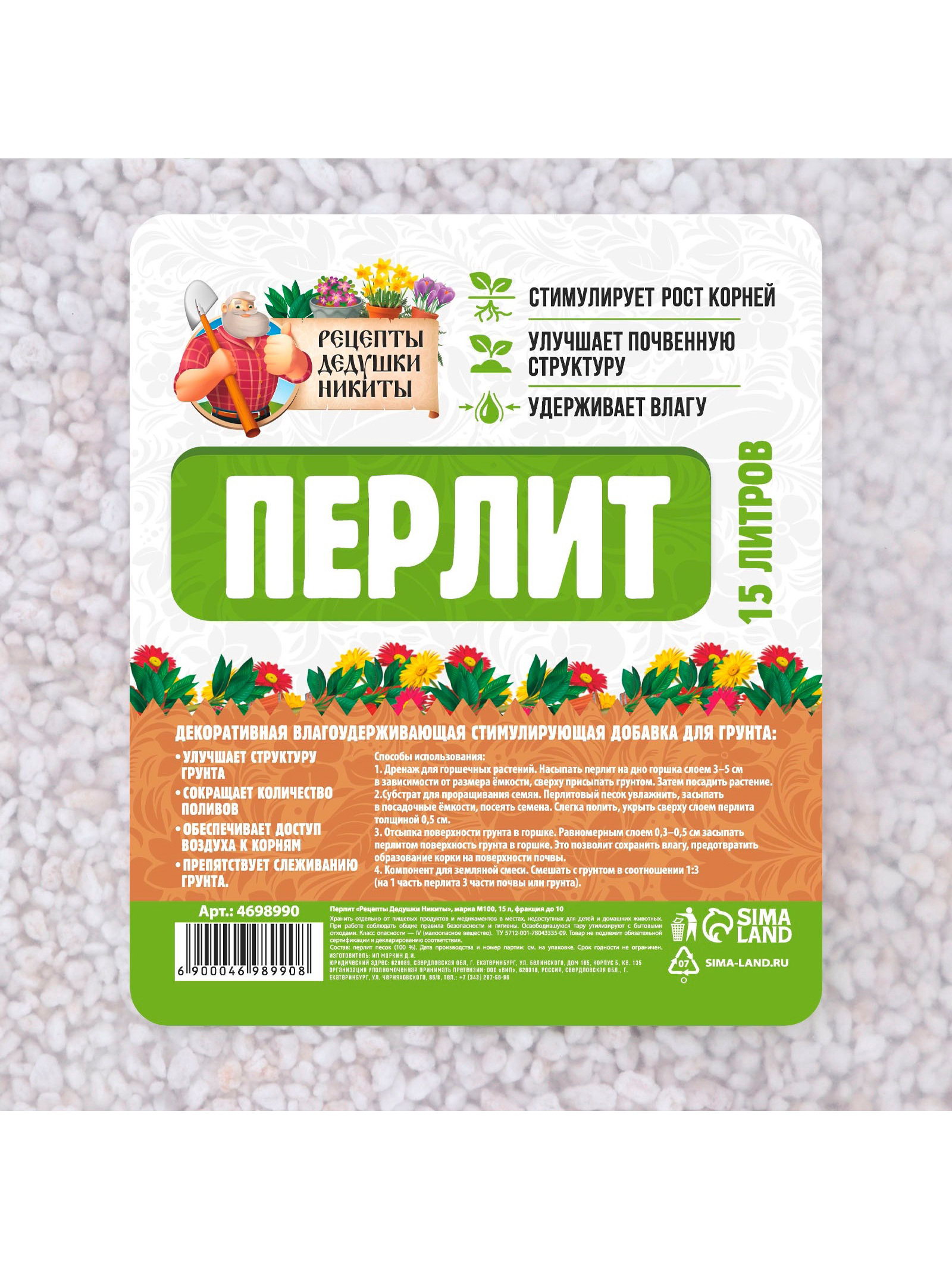 Перлит "Рецепты Дедушки Никиты" марка М100 15 л фр до 10, Рецепты дедушки Никиты, Россия