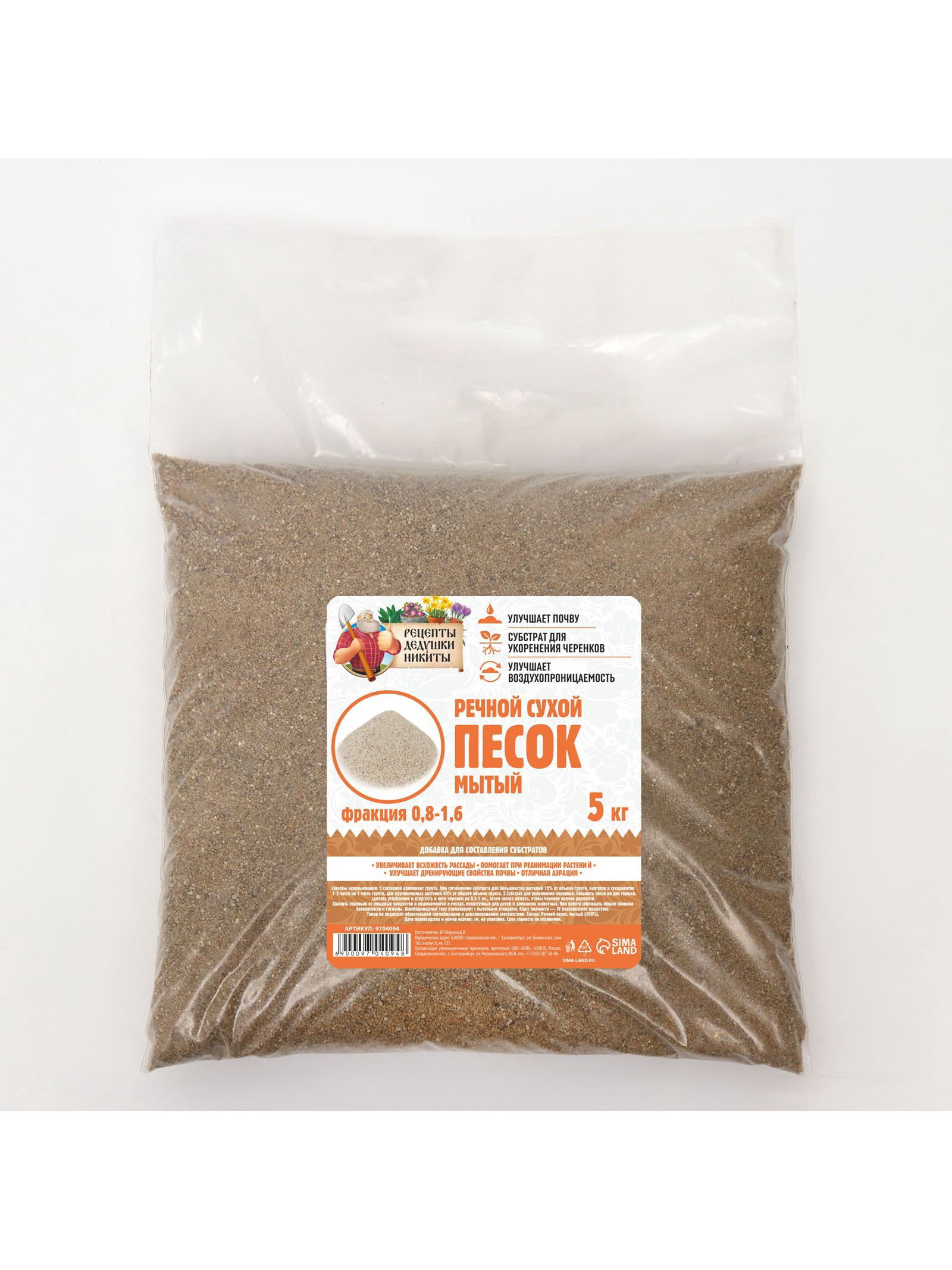 Речной песок сухой, фр 0.8-1.6, 5 кг, Рецепты дедушки Никиты, Россия