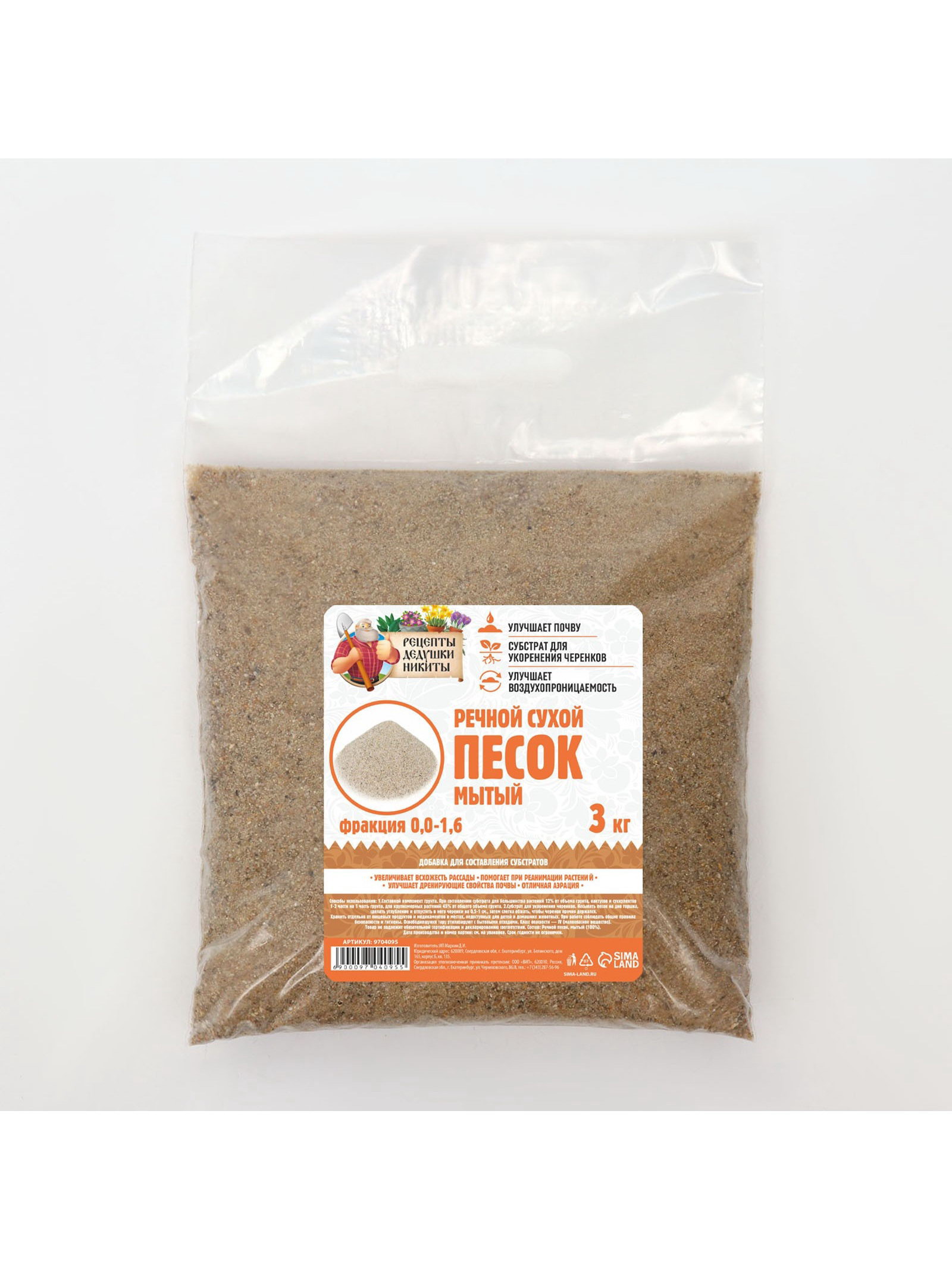 Речной песок сухой, фр 0.0-1.6, 3 кг, Рецепты дедушки Никиты, Россия