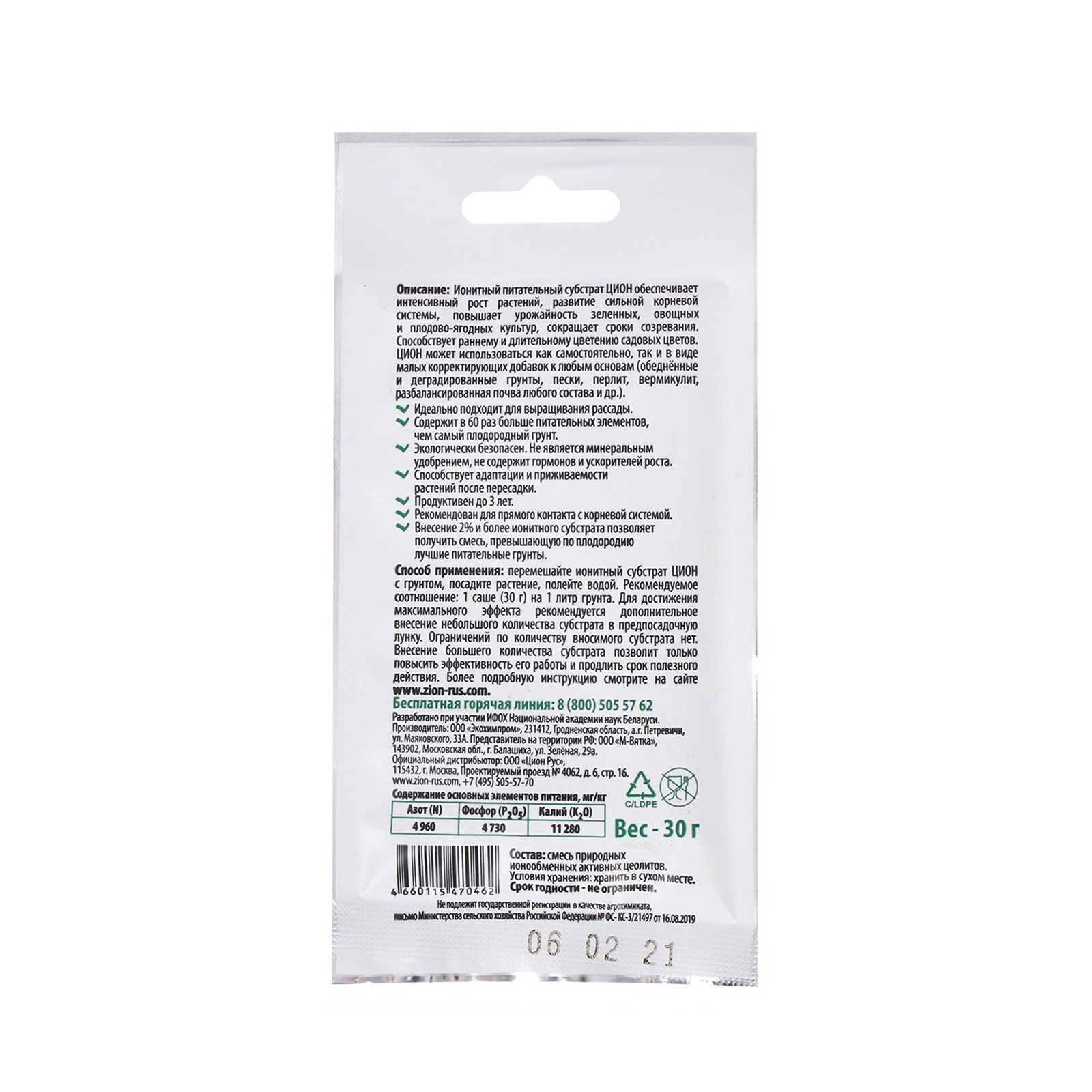 Субстрат "Классик", ионитный, безнитратная питательная добавка для растений, 30 г, ZION, Россия