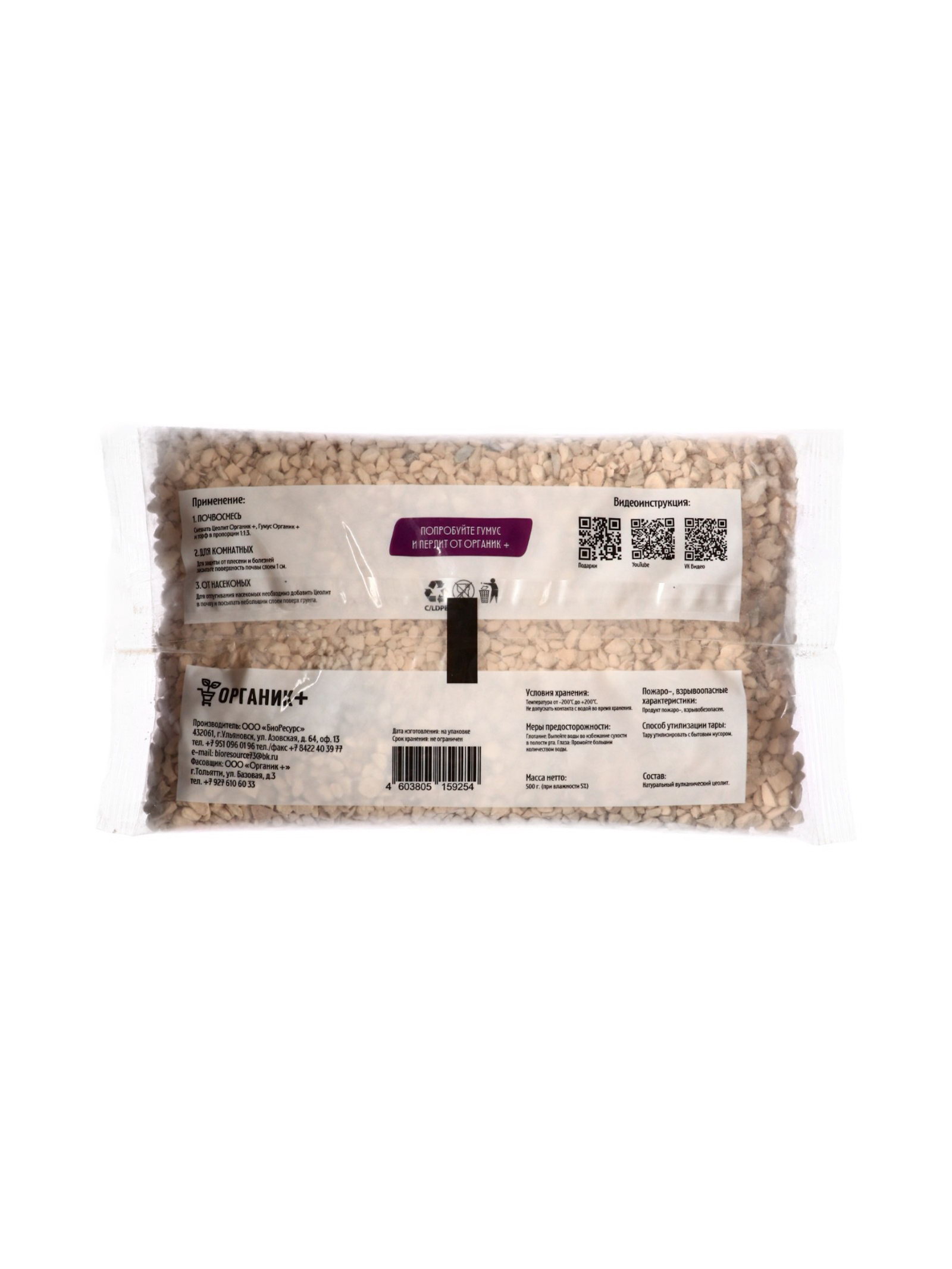 Цеолит, питательный субстрат 1 л, Органик+, Россия