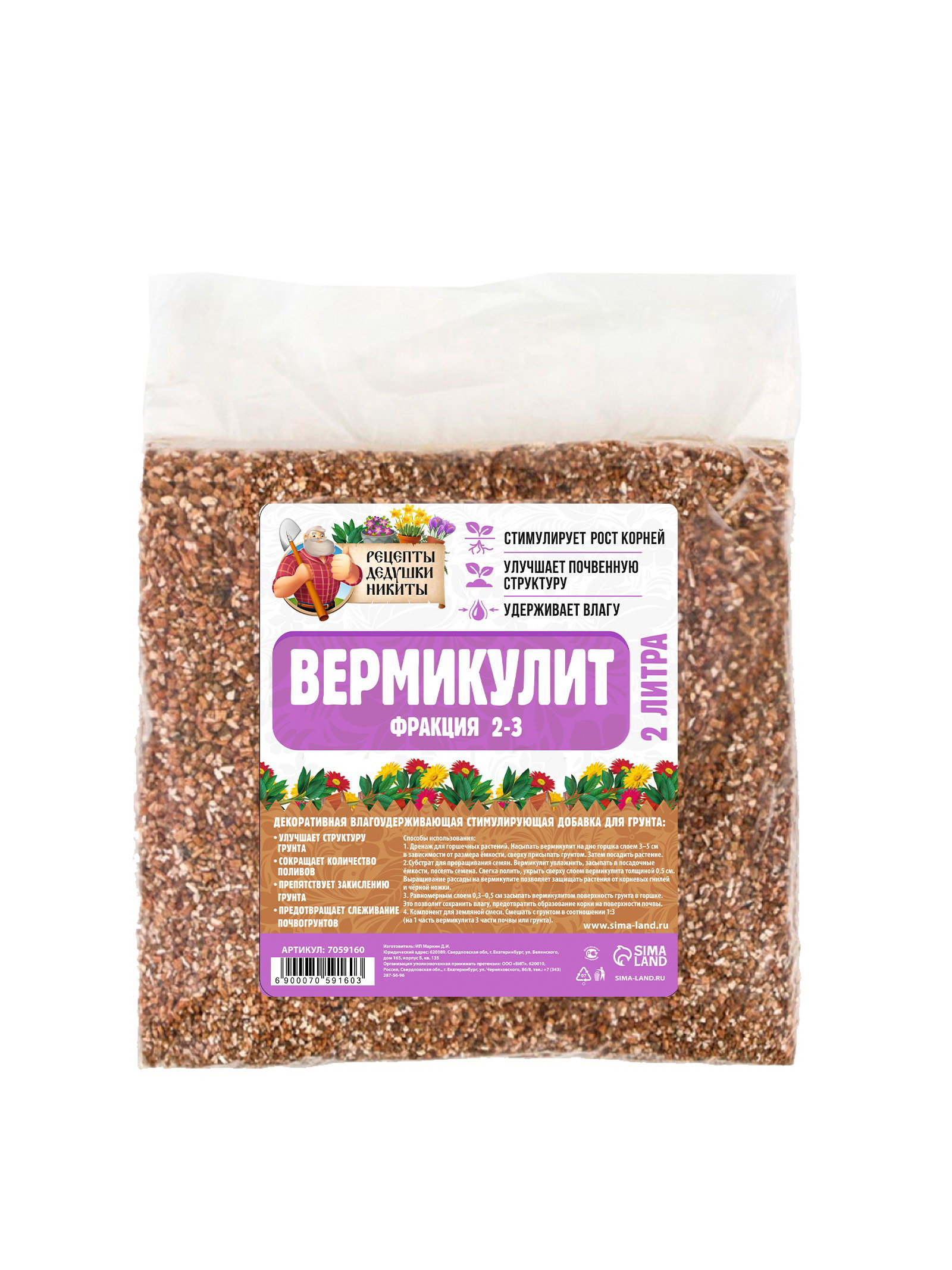 Вермикулит "Рецепты Дедушки Никиты"для растений, добавка в грунт, для рассады, фр 2-3, 2 л, Рецепты дедушки Никиты, Россия