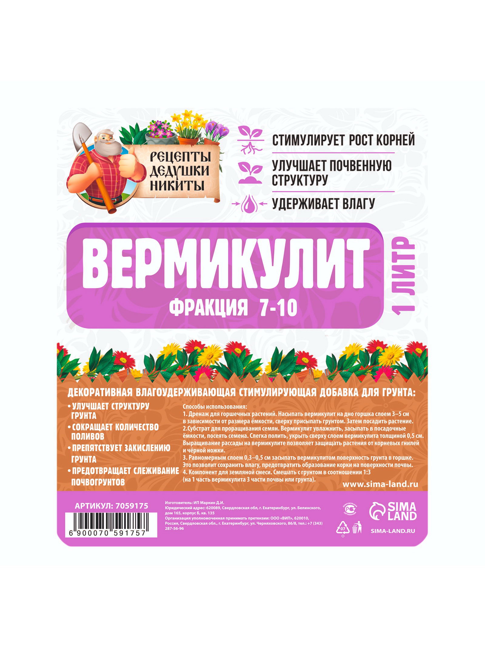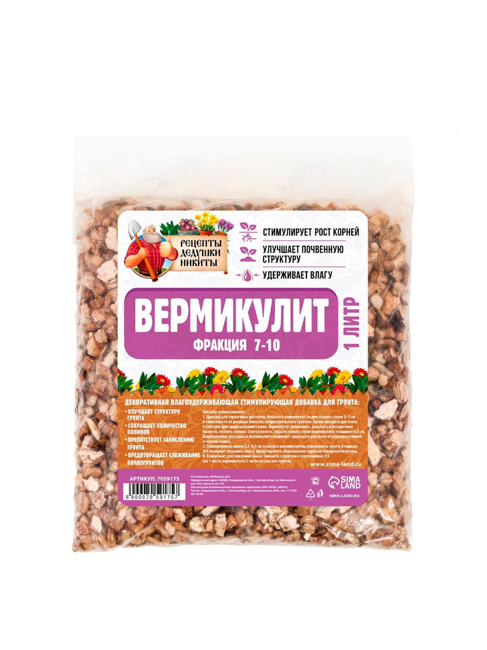 Вермикулит "Рецепты Дедушки Никиты" для растений, почвоулучшитель, фр 7-10, 1 л, Рецепты дедушки Никиты, Россия