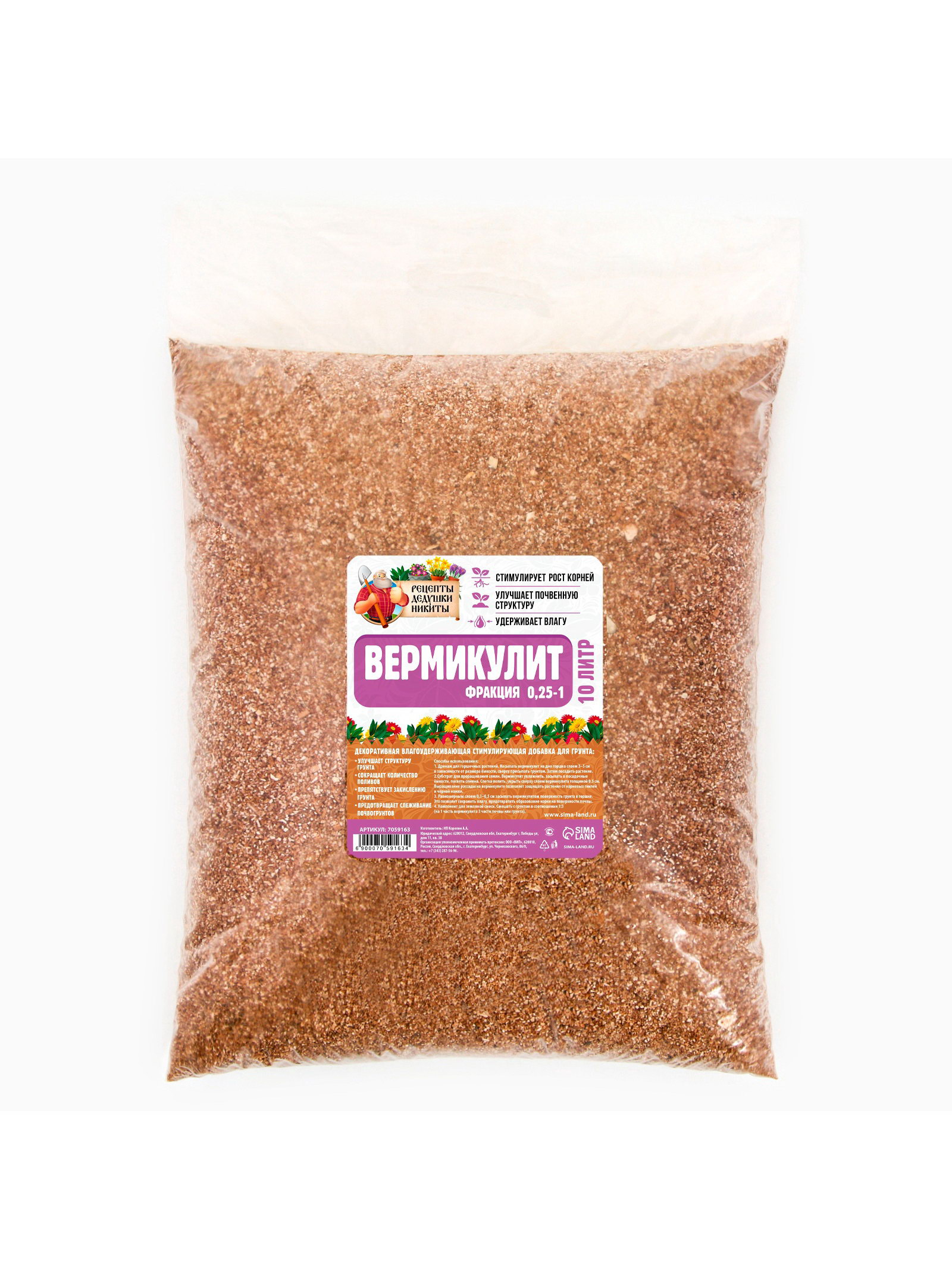 Вермикулит "Рецепты Дедушки Никиты" для растений, добавка в грунт, для рассады, фр 0.25-1, 10 л, Рецепты дедушки Никиты, Россия