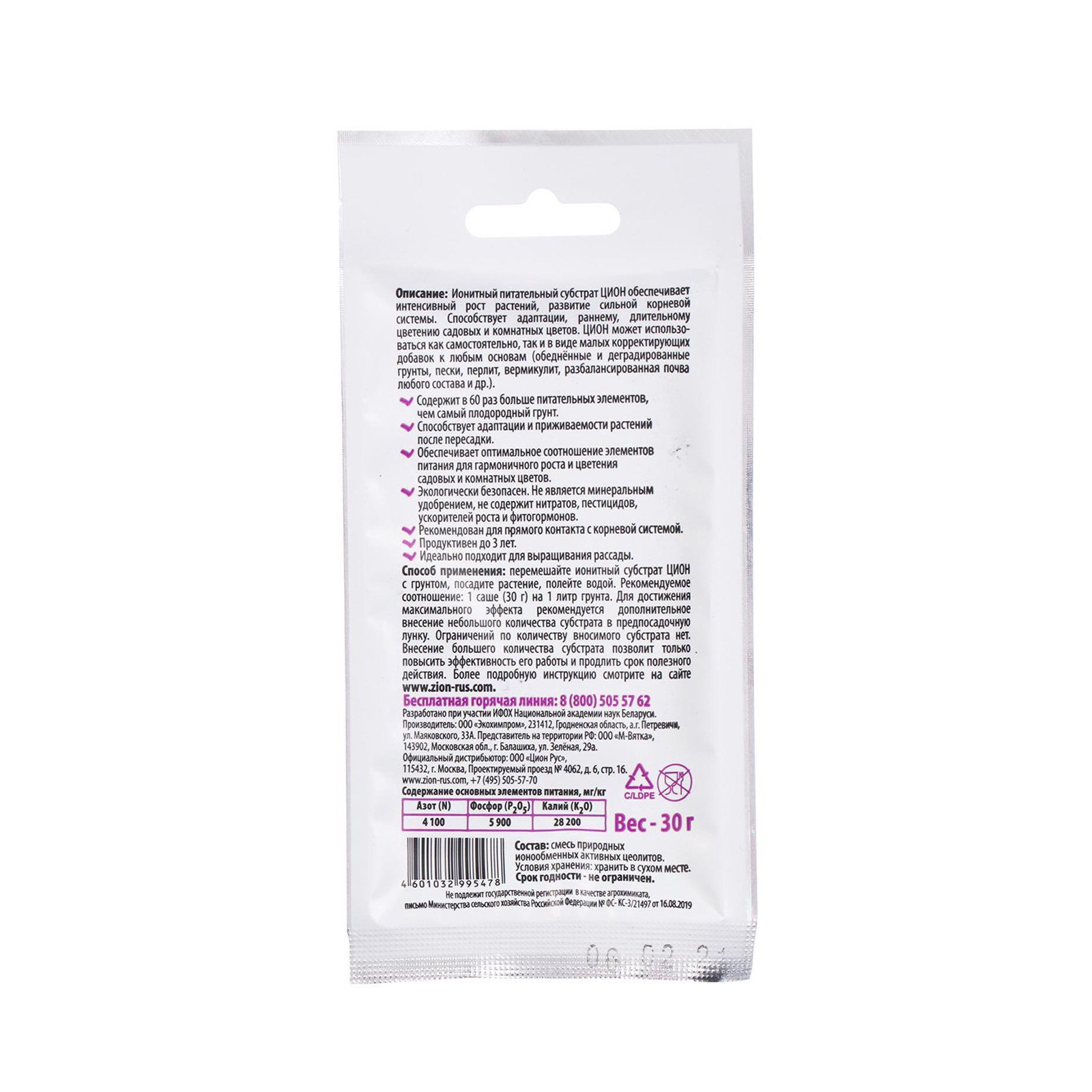 Субстрат ионитный, 30 г, для выращивания цветочных культур, ZION, Россия