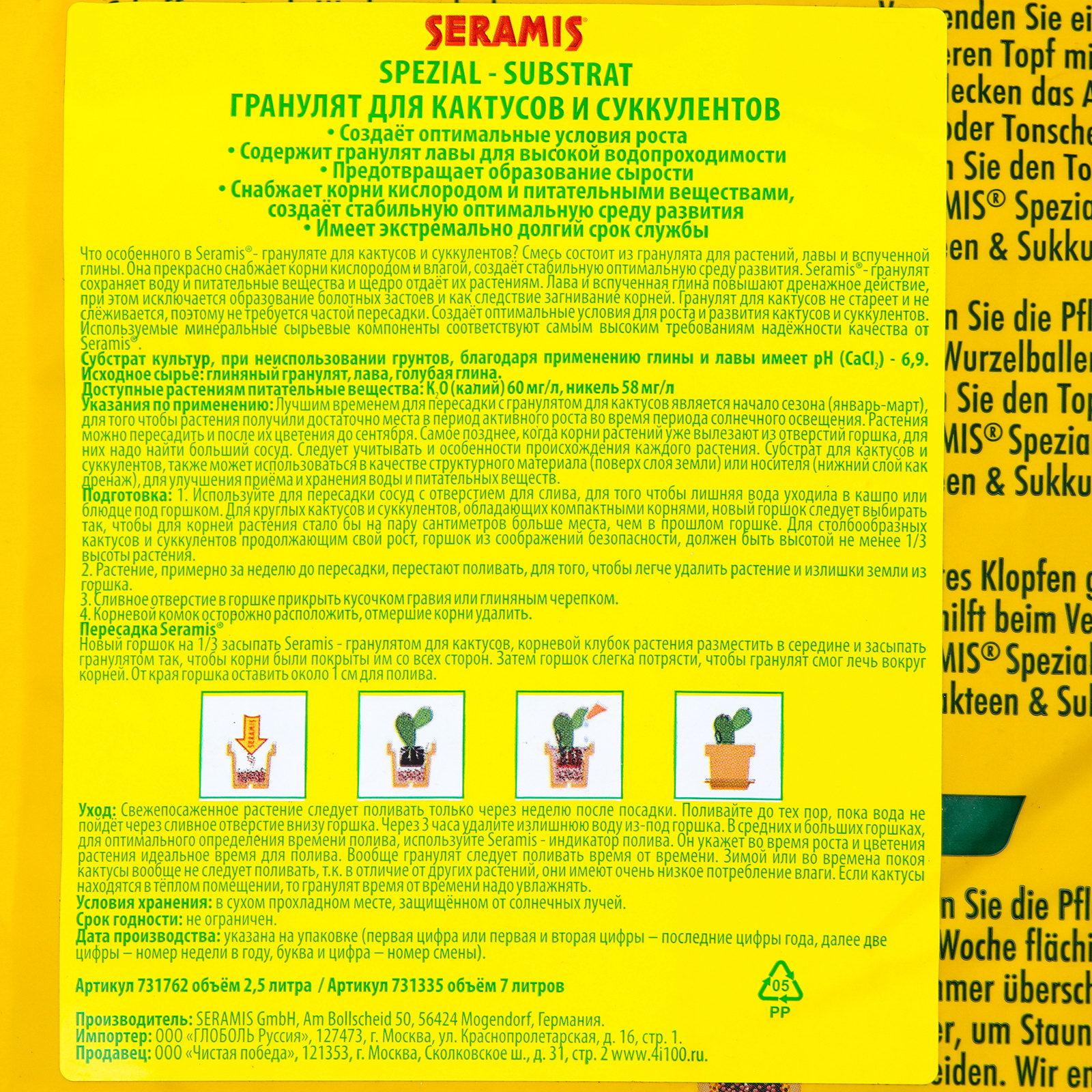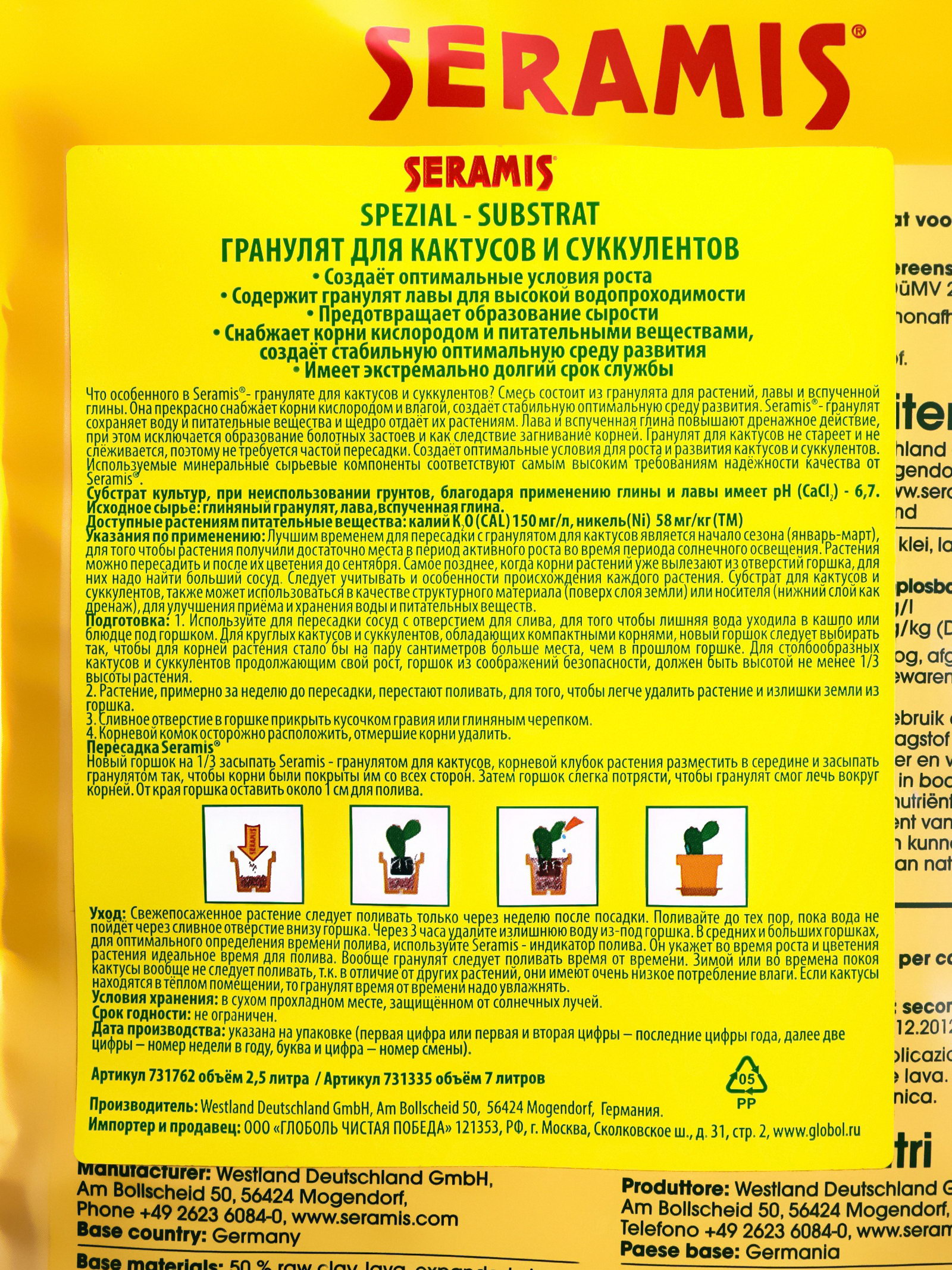 Гранулят для Кактусов и суккулентов 7 л, Seramis, Германия