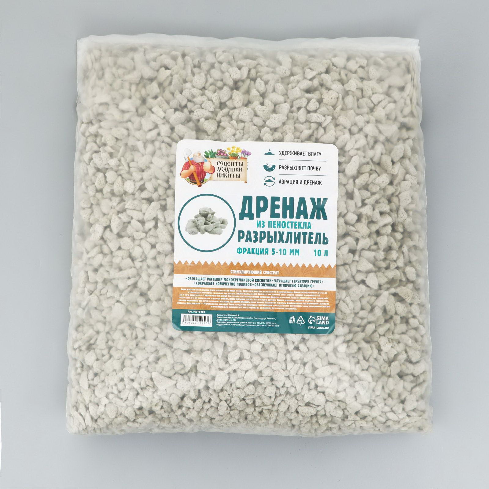 Дренаж и разрыхлитель из пеностекла "Рецепты Дедушки Никиты" фр 5-10 мм, 10 л, Рецепты дедушки Никиты, Россия