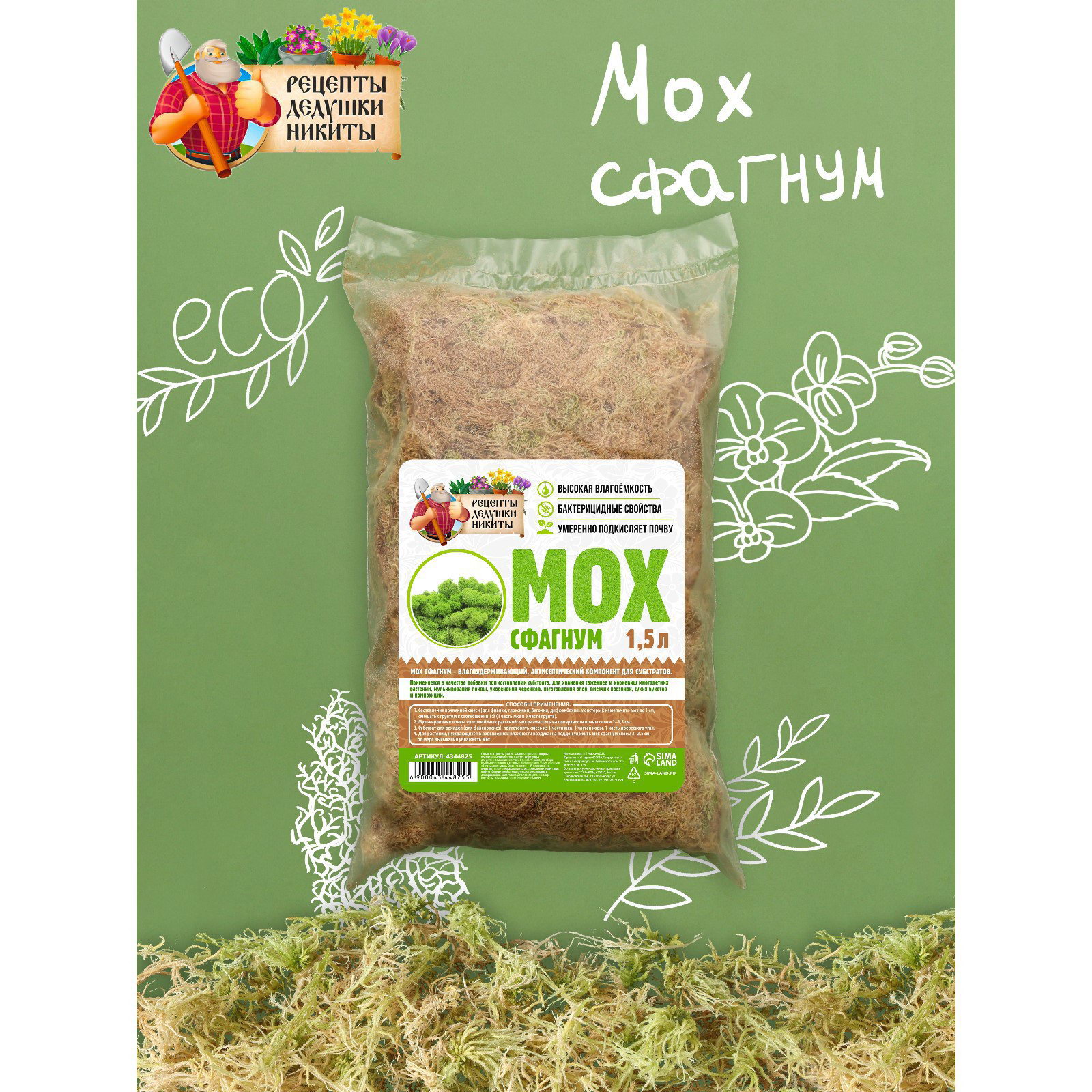 Мох сфагнум "Рецепты Дедушки Никиты" 1.5 л, Рецепты дедушки Никиты, Россия