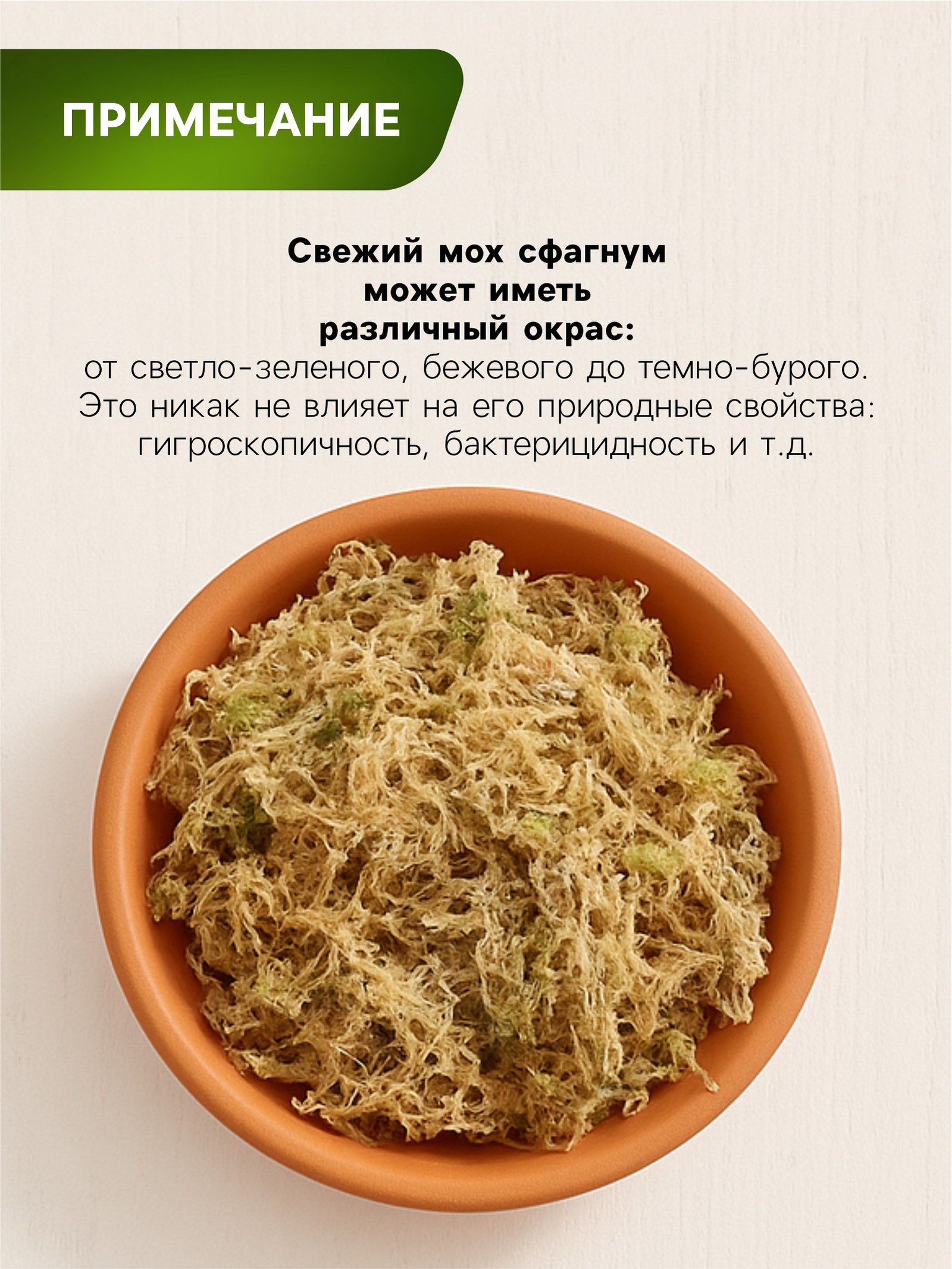 Состав: мох сфагнум. Меры предосторожности: Хранить отдельно от пищевых продуктов и медикаментов, в местах, недоступных для детей и домашних животных. При работе соблюдать общие правила безопасности и гигиены. Освободившуюся тару утилизируют с бытовыми от ходами. Класс опасности: IV (Малоопасное вещество) После замораживания - размораживания не теряет своих качеств. | ||