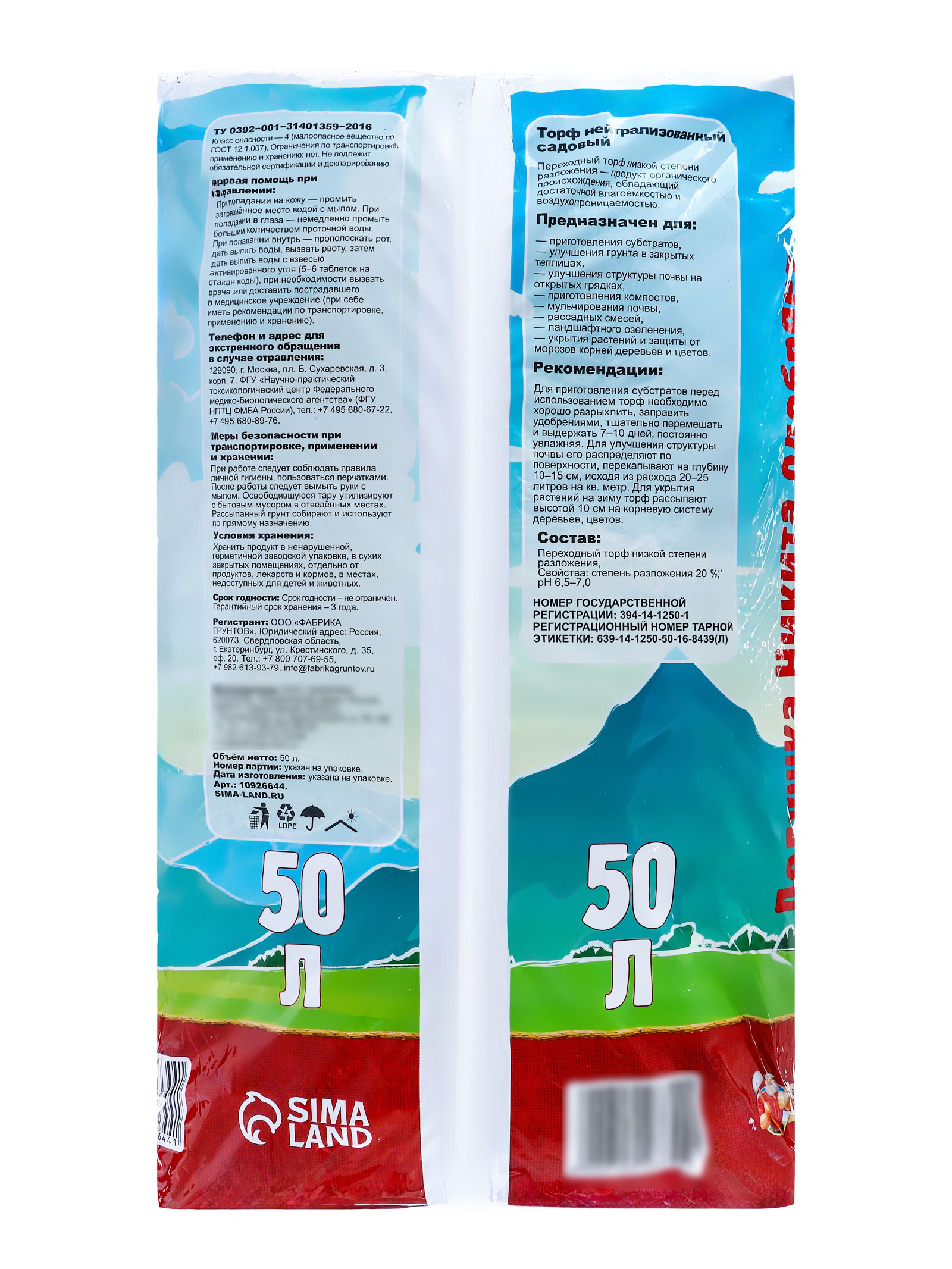 Торф нейтрализованный "Рецепты Дедушки Никиты", 50 л, Рецепты дедушки Никиты, Россия