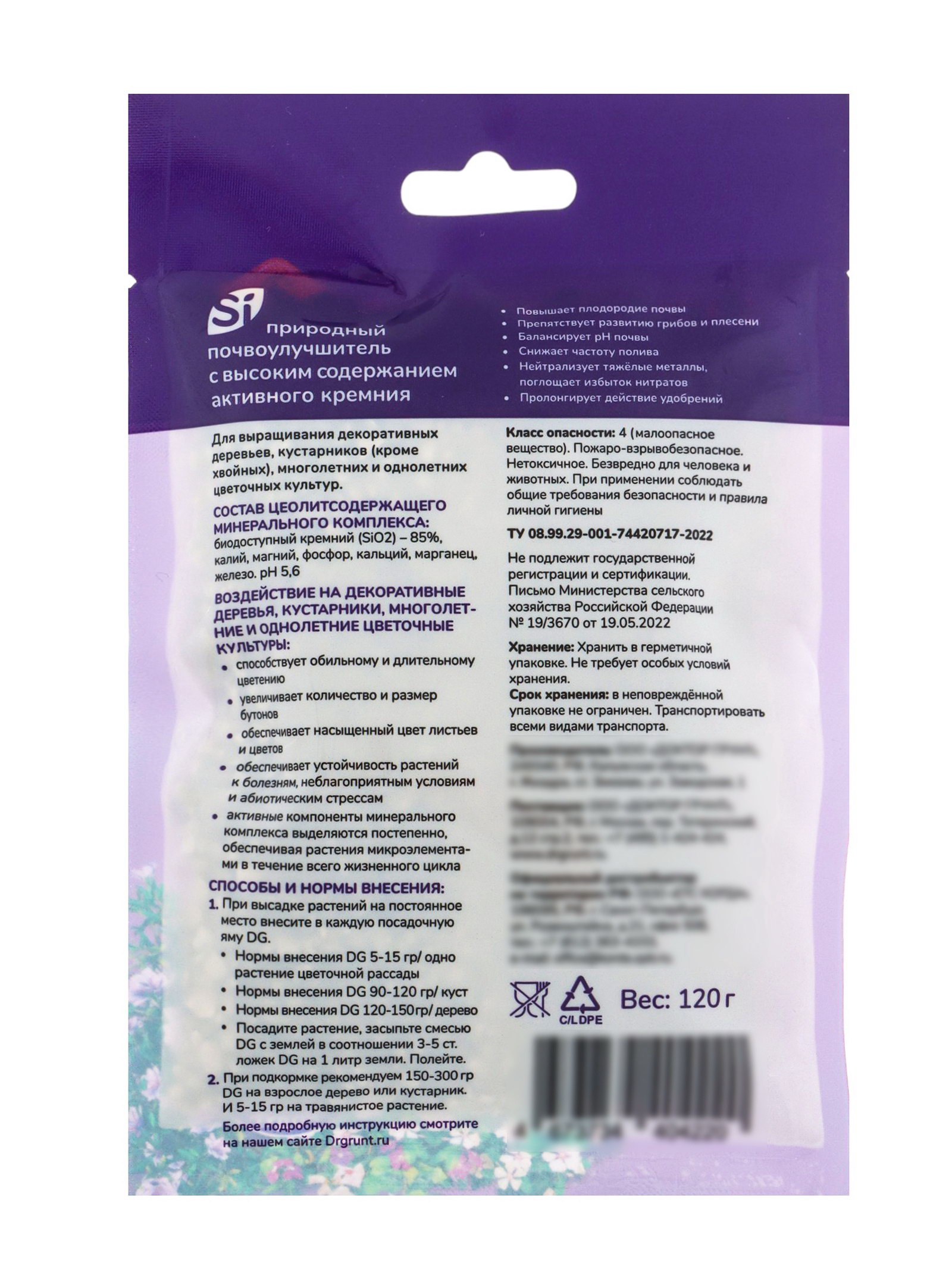 Размер упаковки: 12.5 x 20 x 32.5 см. tnved: 3102500000 Температурное ограничение: Нет Вес/Объём: 1.8 кг Удобрение Dr.Grunt для цветов и кустарников в индивидуальных саше это готовые порции специализированного питания. Набор из 15 пакетиков общим весом 1,8 кг обеспечивает точную и удобную подкормку декоративных культур в саду.