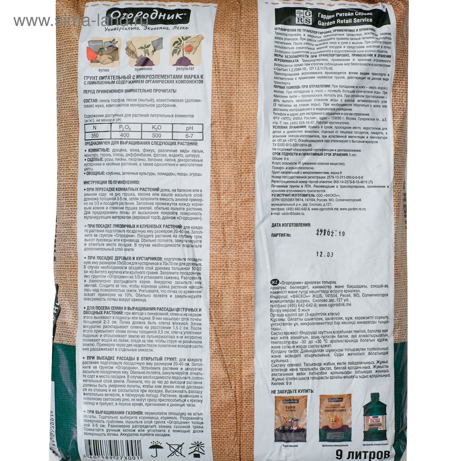 Размер упаковки: 30 x 40 x 5 см. Вес/Объём: 9 л tnved: 2703000000 Кислотность: Нейтральные (5.5-7 pH) Сатурн: Да Область применения: Для всех видов растений и культур УНИВЕРСАЛЬНЫЙ ГРУНТ ОГОРОДНИК Преимущества: • Повышает приживаемость растений • Полностью готов к применению • Не содержит возбудителей болезней и токсичных веществ Плодородный универсальный грунт предназначен для посадки и ухода за растениями в открытом и защищенном грунте, для выращивания рассады и пересадки комнатных цветов. Применяя правильный грунт растения растут крепкими и здоровыми. Подходит для выращивания следующих растений: ? КОМНАТНЫЕ: драцена, юкка, фикус, различные виды пальм, монстера, герань, плющ, диффенбахия, фатсия, маранта, циперус. ? САДОВЫЕ: розы, пионы, георгины, бегонии, лилии, декоративные кустарники и хвойные растения, а также однолетние и многолетние цветы. ? ОВОЩНЫЕ: клубника, зеленые культуры, помидоры, перцы, огурцы. Состав: Смесь торфов, песок известняковая (доломитовая) мука, комплексное минеральное удобрение | ||
