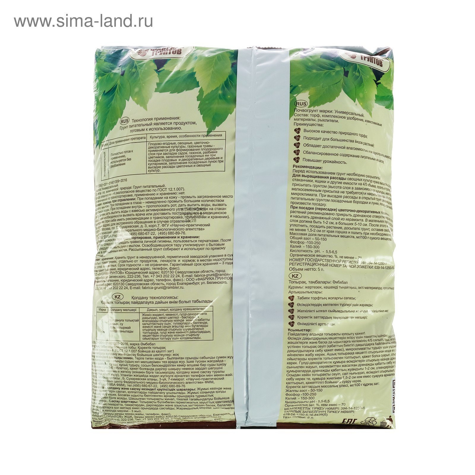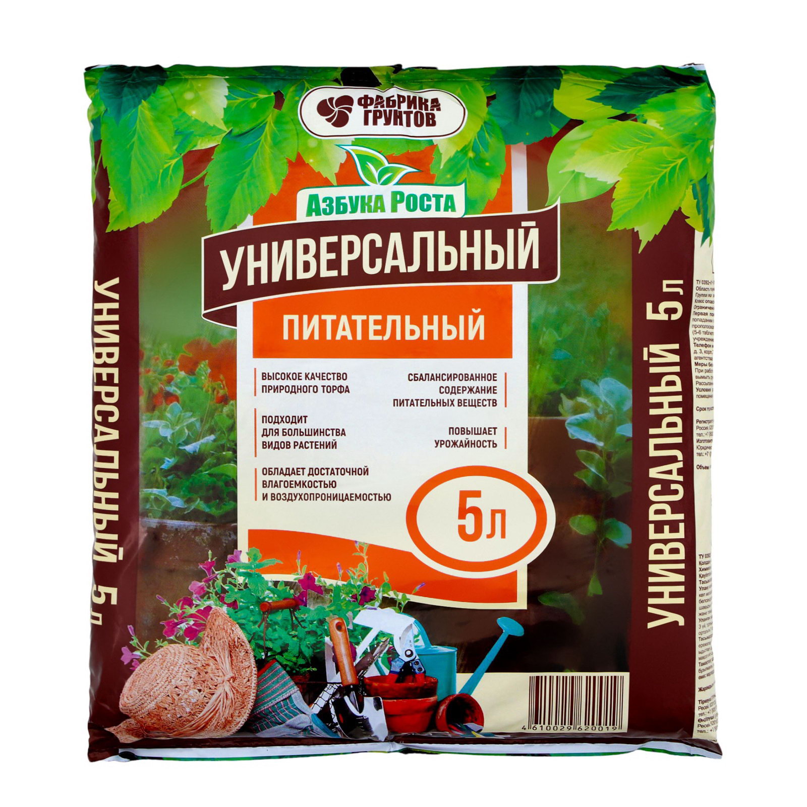 Почвогрунт Универсальный питательный, 5 л, Азбука Роста, Россия