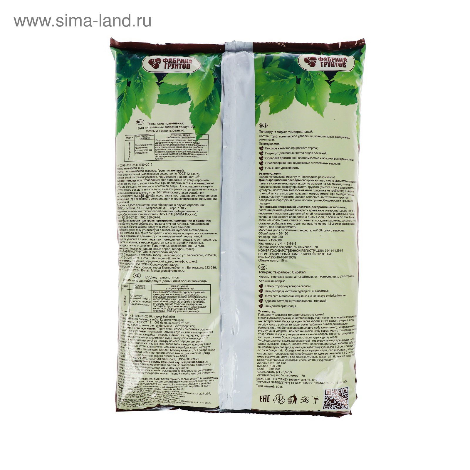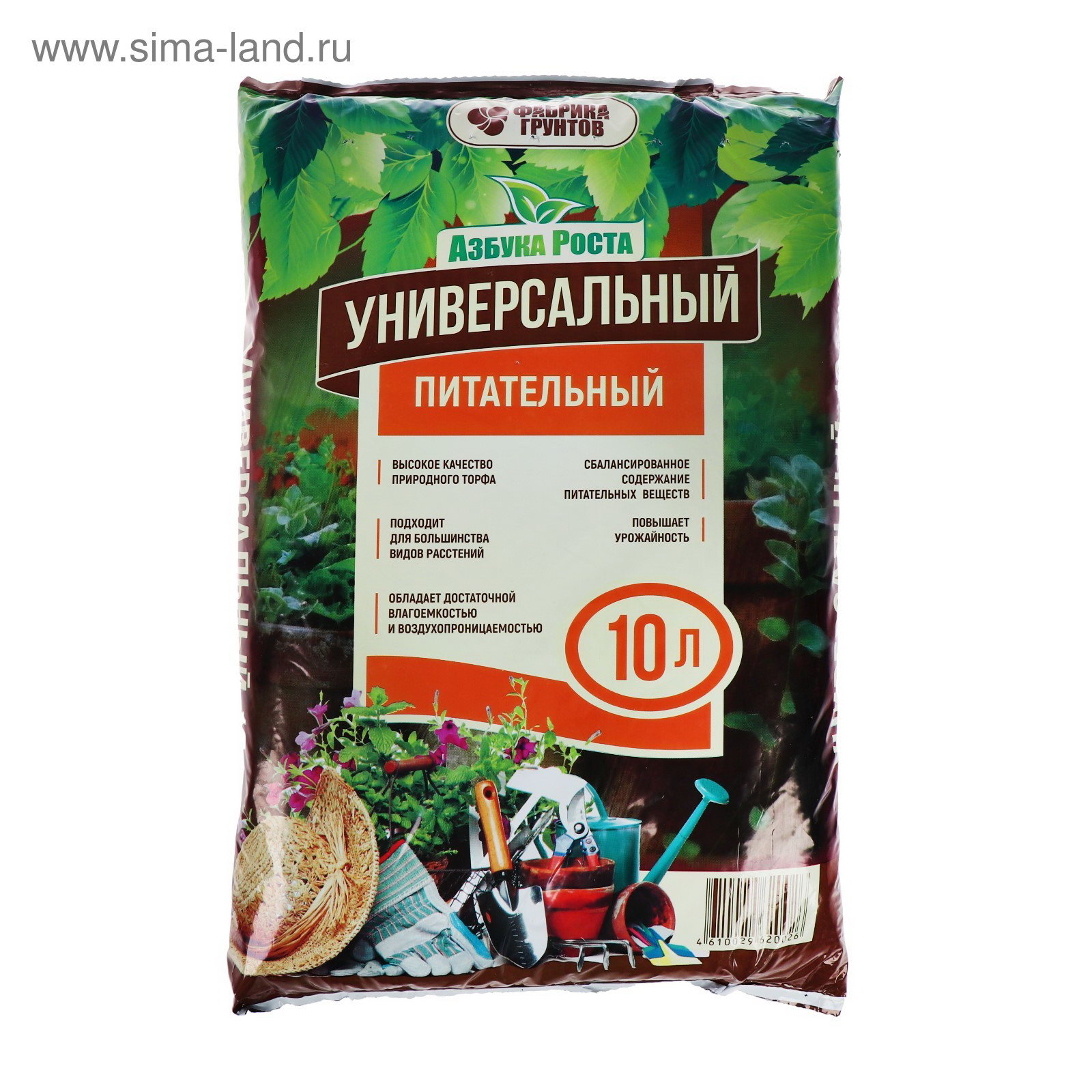 Почвогрунт Универсальный питательный, 10 л, 36.5x13x70 см., Азбука Роста, Россия