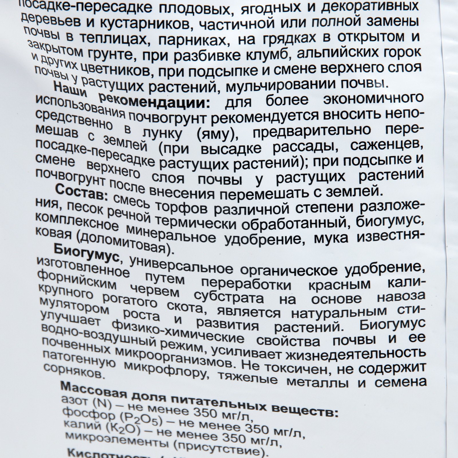 Размер упаковки: 36 x 10 x 50 см. tnved: 2703000000 Кислотность: Нейтральные (5.5-7 pH) Вес/Объём: 20 л Температурное ограничение: Нет Полностью готовый к применению грунт (можно использовать без разбавления) для выращивания цветочно-декоративных, овощных культур, плодовых, ягодных и декоративных деревьев и кустарников, газонных трав и других культур в открытом и закрытом грунте. Применяется в качестве готового питательного грунта для заполнения посадочных емкостей при выращивании рассады цветочных и овощных культур, в горшечных растений, заполнение посадочных лунок при высадке растений, посадке-пересадке цветочных и овощных культур, заполнения посадочных ям при посадке-пересадке плодовых, ягодных и декоративных деревьев и кустарников, частичной или полной замены почвы в теплицах, парниках, на грядках в открытом и закрытом грунте, при разбивке клумб, альпийских горок и других цветников, при посыпке и смене верхнего слоя почвы у растущих растений, мульчировании почвы. Рекомендации: для более экономичного использования почвогрунт рекомендуется вносить непосредственно в лунку, предварительно перемешав с землей (при высадке рассады, саженцев, посадке-пересадке растущих растений), при посыпке и смене верхнего слоя почвы у растений почвогрунт после внесения перемешать с землей. Состав: смесь торфов различной степени разложения, песок речной термически обработанный, биогумус, комплексное минеральное удобрение, мука известняковая (доломитовая). | ||