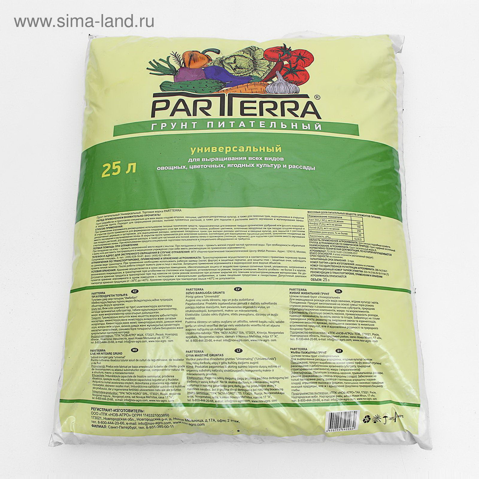 Грунт Универсальный Нов-Агро, 25 л, НОВ-АГРО, Россия