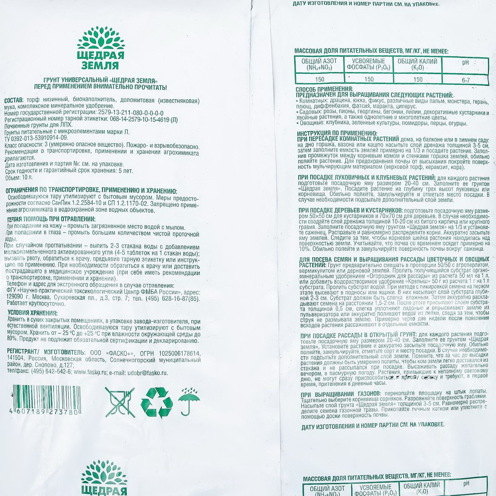 Грунт универсальный "Щедрая земля", 10 л, Фаско, Россия