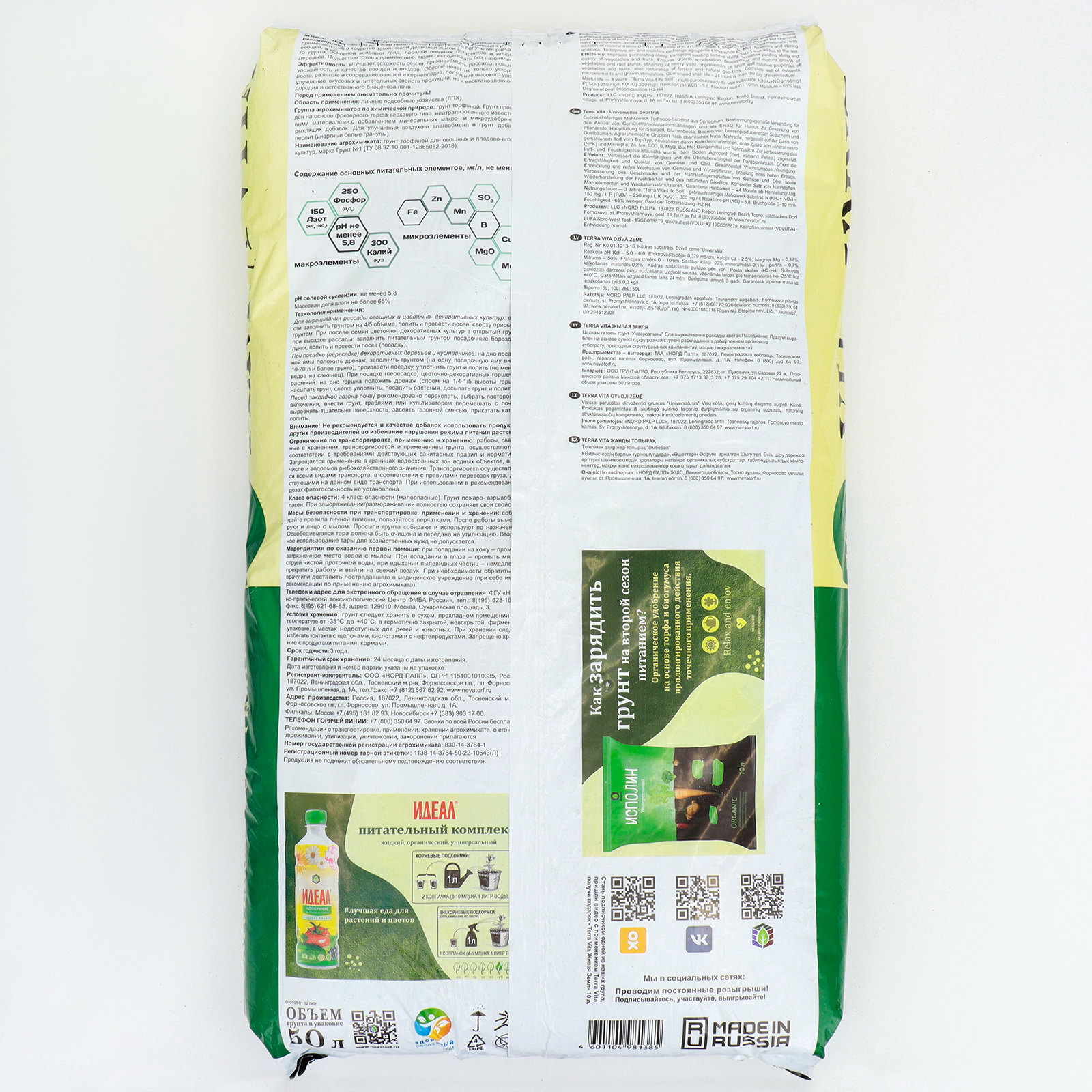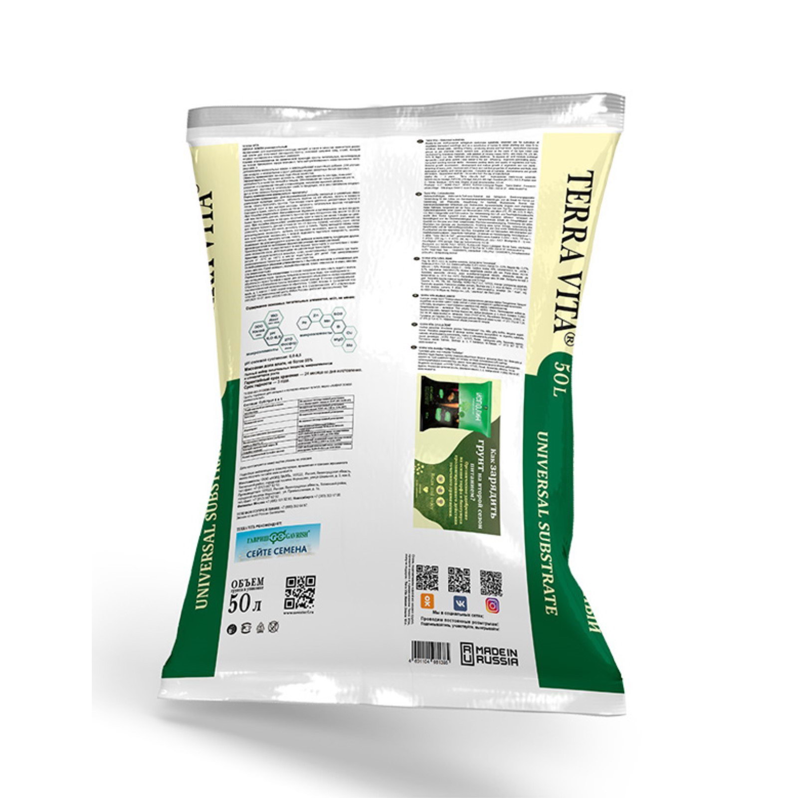 Грунт универсальный "Живая Земля", 50 л, Terra Vita, Россия