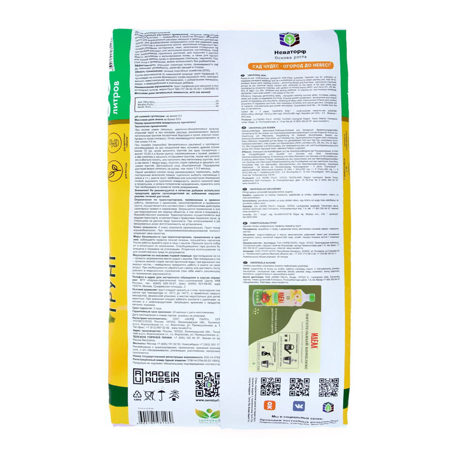 Размер упаковки: 42 x 12 x 75 см. Температурное ограничение: Нет Вес/Объём: 50 л tnved: 2703000000 Кислотность: Нейтральные (5.5-7 pH) Сатурн: Да Грунт Универсальный "Сад Чудес", 50лГрунт Универсальный "Сад Чудес" представляет собой высококачественный питательный субстрат, специально разработанный для выращивания рассады плодовых и овощных растений, декоративных культур и цветов как в открытом, так и в закрытом грунте. Этот универсальный грунт изготовлен на основе качественного торфа, что обеспечивает оптимальные условия для здорового роста и развития растений.Основные характеристики грунта "Сад Чудес":1. Рыхлая консистенция. Грунт обладает рыхлой структурой, что способствует хорошей вентиляции корневой системы растений и обеспечивает доступ кислорода к корням.2. Водоудерживающие свойства. Специальная формула грунта позволяет ему эффективно впитывать и задерживать влагу, обеспечивая растения необходимым количеством влаги в течение длительного времени.3. Питательные элементы. В состав грунта входят необходимые питательные элементы, которые обеспечивают растения все необходимыми питательными веществами для здорового роста и развития.4. Универсальность. Грунт подходит для выращивания широкого спектра растений, что делает его универсальным субстратом для садоводов и цветоводов.Преимущества использования грунта "Сад Чудес":- Обеспечивает оптимальные условия для здорового роста и развития растений.- Удобен в использовании благодаря универсальности и высокой эффективности.- Позволяет достичь высоких урожаев овощей и фруктов, а также ярких и красочных цветов.- Способствует укреплению иммунной системы растений и защите от болезней.Грунт Универсальный "Сад Чудес" является незаменимым помощником для тех, кто заботится о здоровье и красоте своих растений. Благодаря своим уникальным свойствам, этот грунт обеспечивает оптимальные условия для выращивания различных видов растений, что делает его незаменимым средством для создания настоящего "сада чудес" на вашем участке. | ||