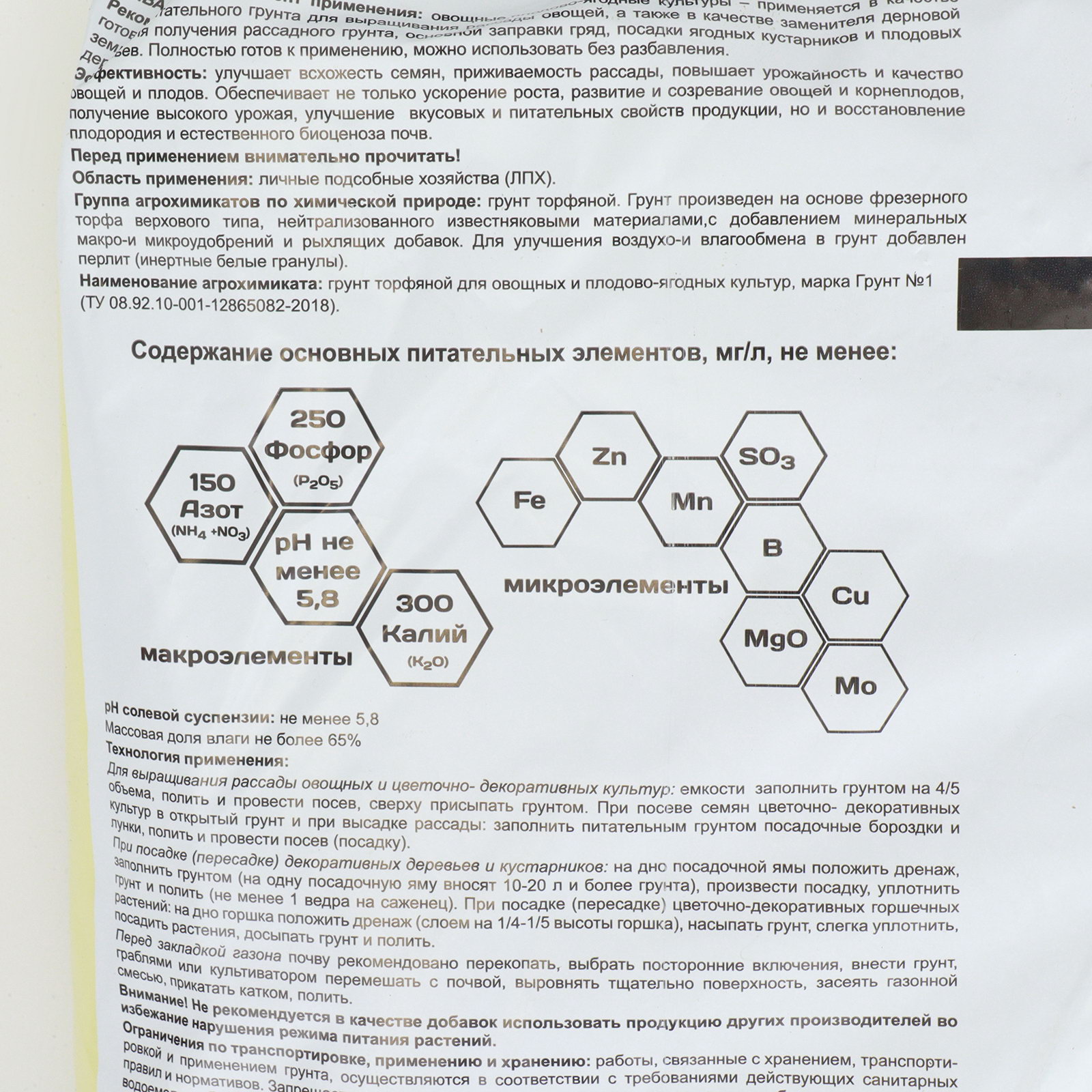 Размер упаковки: 29 x 5 x 40 см. Область применения: Для всех видов растений и культур Вес/Объём: 10 л tnved: 2703000000 Сатурн: Да Кислотность: Нейтральные (5.5-7 pH) Полностью готовый питательный грунт Terra Vita применяется для выращивания всех видов овощных и ягодных культур, цветов и рассады. Улучшает всхожесть семян, приживаемость рассады. Повышает урожайность и качество овощей и плодов. Обеспечивает ускорение роста, развития и созревания овощей и корнеплодов, получение высокого урожая. Улучшает вкусовые и питательные свойства продукции. Восстанавливает плодородие и естественный биоценоз почв. Характеристики: Тип: грунт для садовых растений, многокомпонентная смесь. Особенности: на основе торфа, с биогумусом. Объем: 10 л Состав: верховой торф различной степени разложения, биогумус, песок намывной, агроперлит, мука известняковая (доломитовая), комплексное минеральное удобрение, сульфат магния, сульфат калия. Основные питательные вещества в мг/л, не менее: азот (NH4 + NO3) - 150; фосфор (P2O5) - 270; калий (K2O) - 300; pH солевой суспензии – 6.0-6.5. Тип упаковки: пакет. Срок годности: 3 года с момента производства. Хранить: при нормальной влажности и в температурном диапазоне от -40°C до +35°C. Преимущества: Грунт полностью готов к использованию. 100% натуральные компоненты. Нейтральная кислотность и рыхлая текстура обеспечивают наилучшее качество урожая. В состав входит комплекс минеральных удобрений. | ||