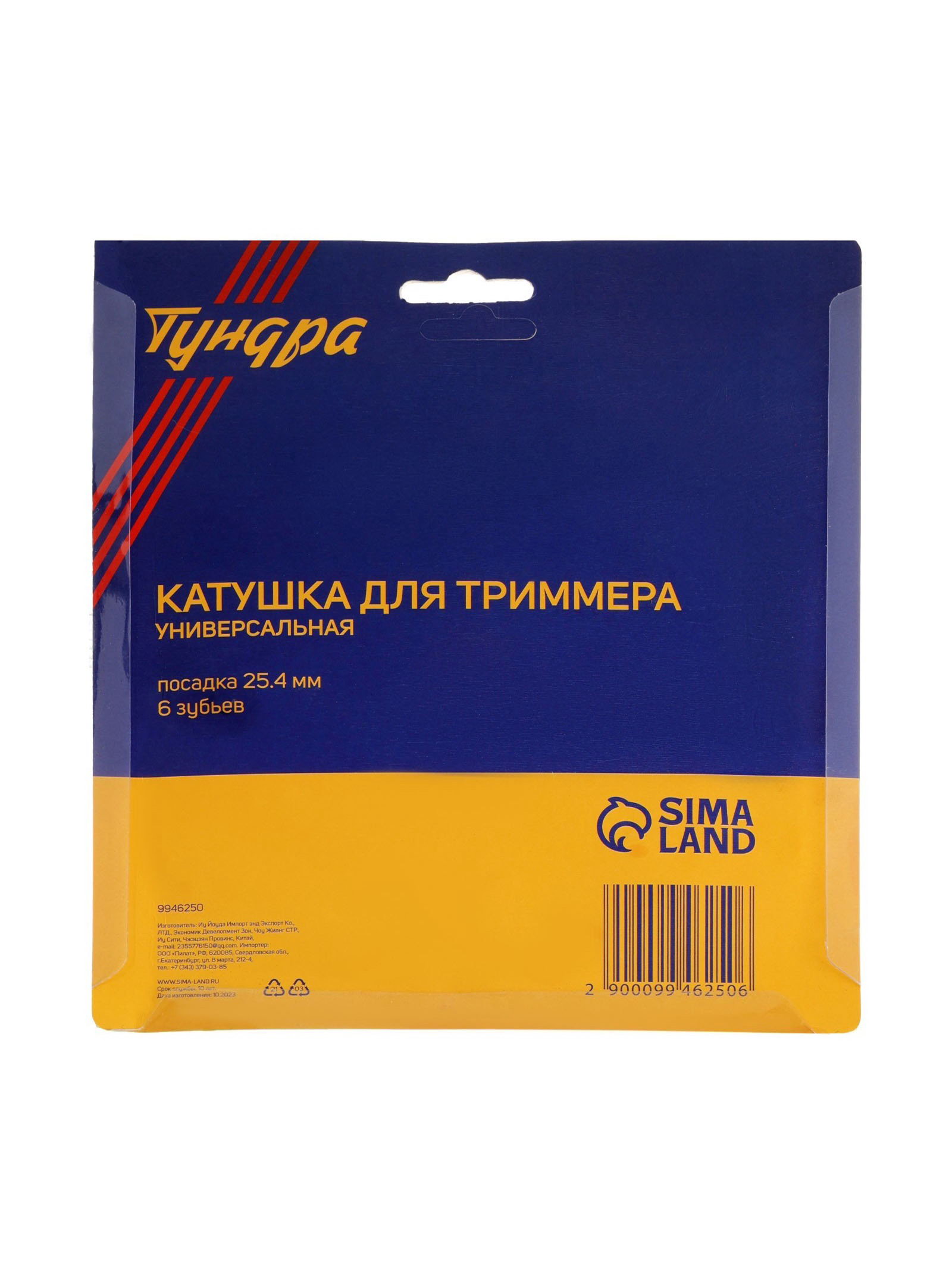 Катушка для триммера универсальная, посадка 25.4 мм, 6 зубьев, ТУНДРА, Китай