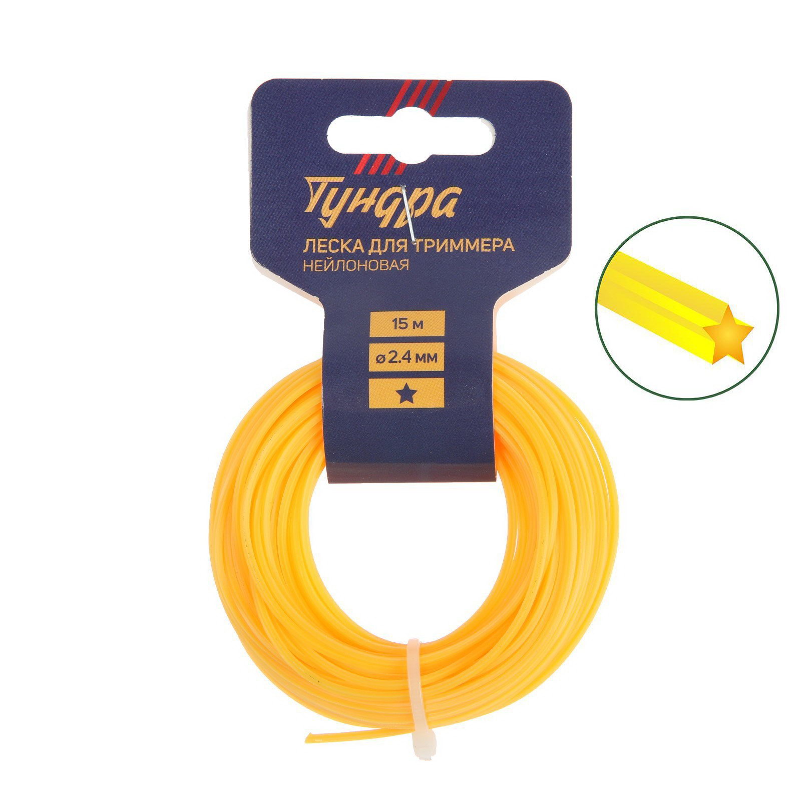 Леска для триммера сечение звезда, d=2.4 мм, 15 м, нейлон, 24 см., ТУНДРА, Россия