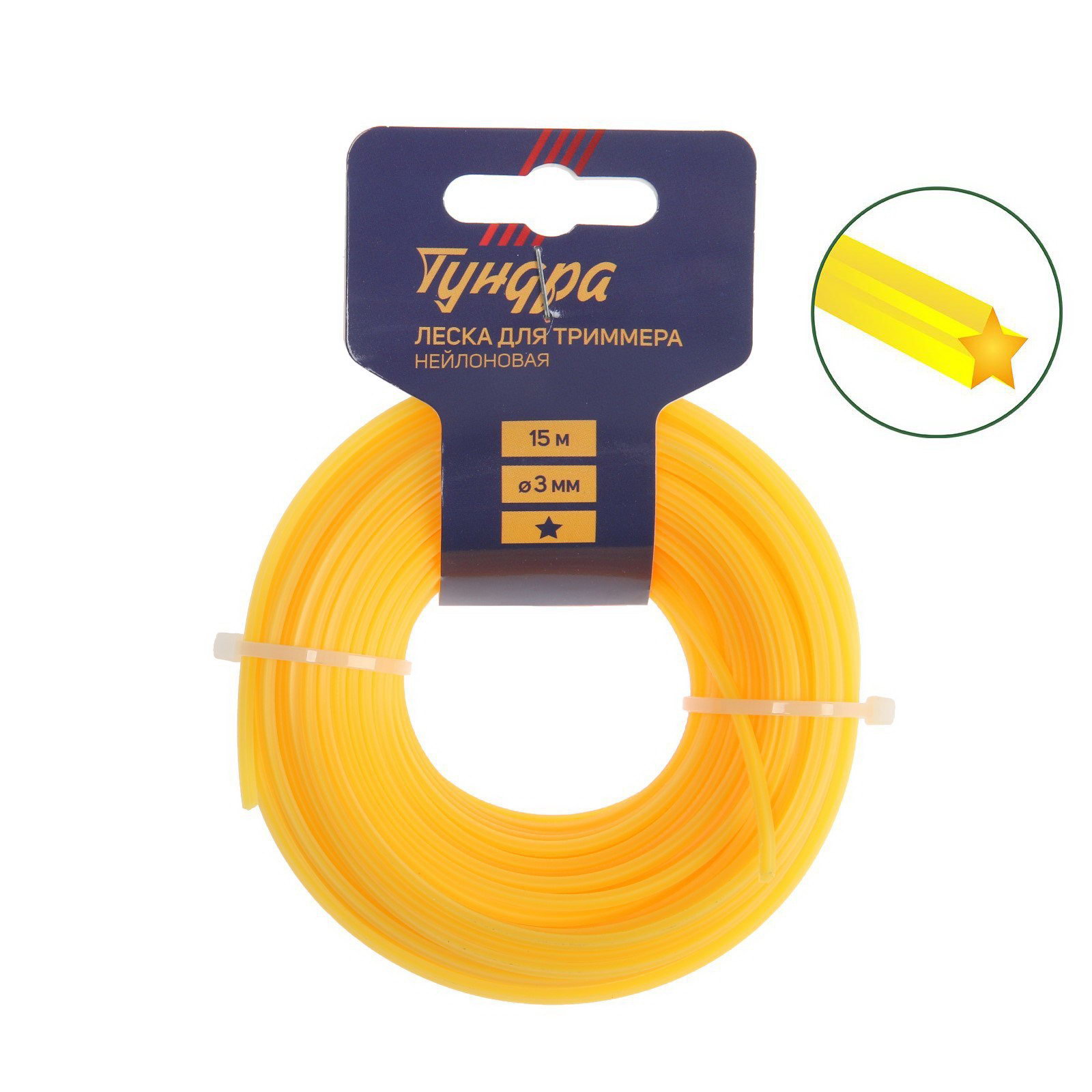 Леска для триммера сечение звезда, d=3 мм, 15 м, нейлон, 30 см., ТУНДРА, Россия