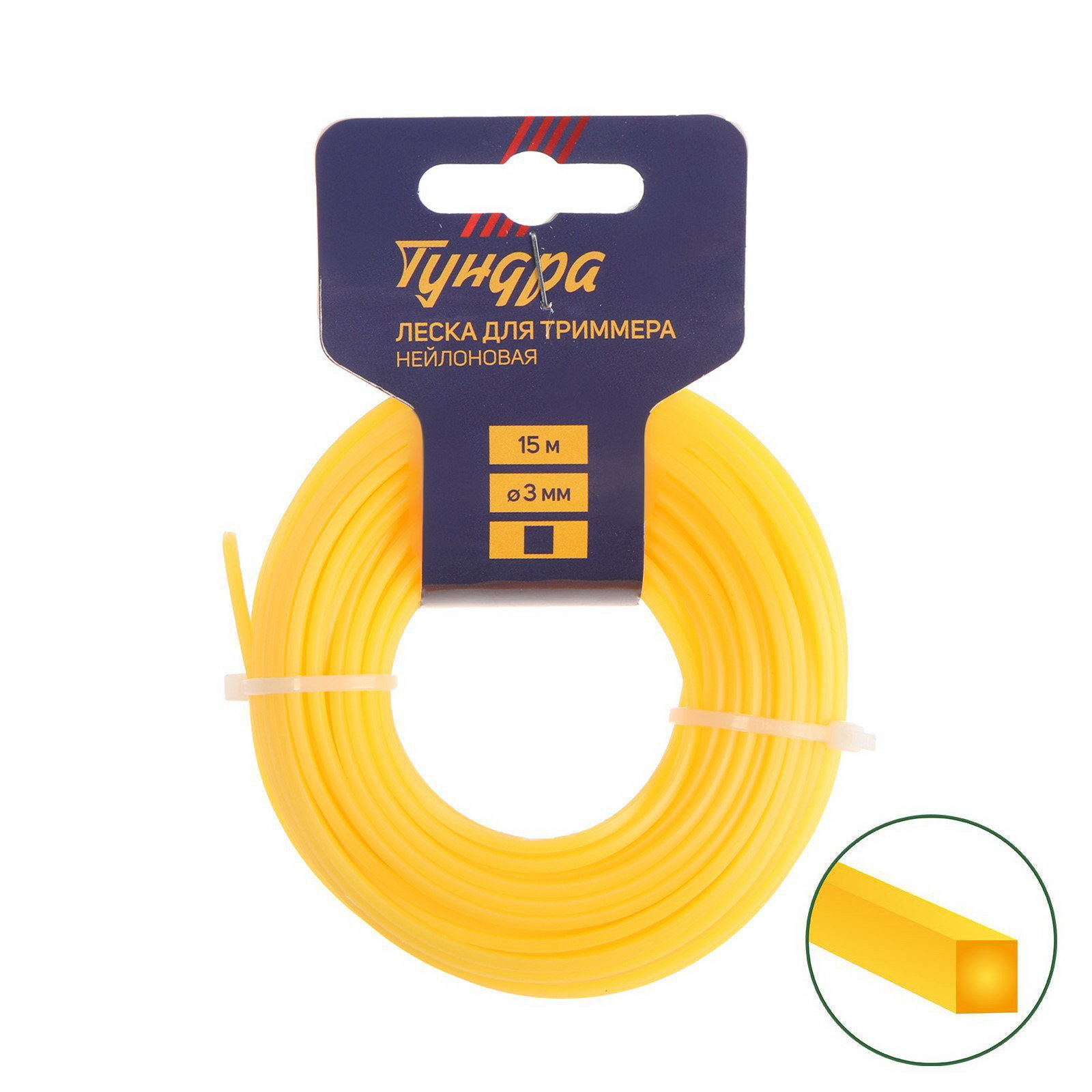Леска для триммера сечение квадрат, d=3 мм, 15 м, нейлон, 30 см., ТУНДРА, Россия