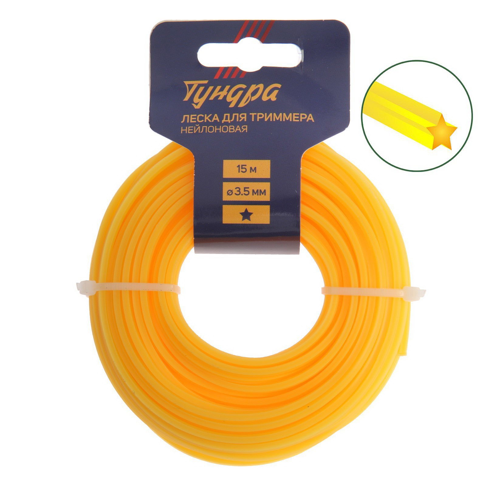 Леска для триммера сечение звезда, d=3.5 мм, 15 м, 35 см., ТУНДРА, Россия