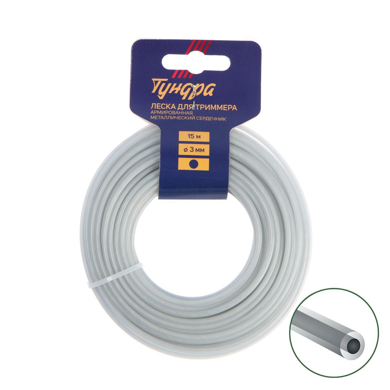 Леска для триммера сечение круг, металлический сердечник, армированная, d=3 мм, 15 м, 30 см., ТУНДРА, Россия