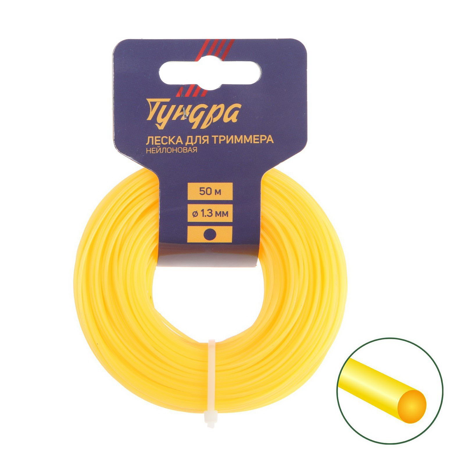 Леска для триммера сечение круг, d=1.3 мм, 50 м, нейлон, 13 см., ТУНДРА, Россия