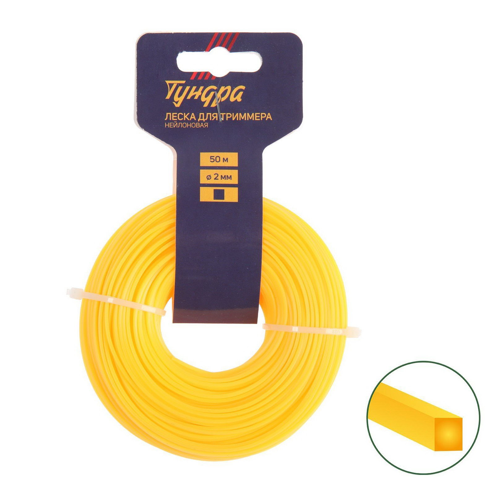 Леска для триммера сечение квадрат, d=2 мм, 50 м, нейлон, 20 см., ТУНДРА, Россия